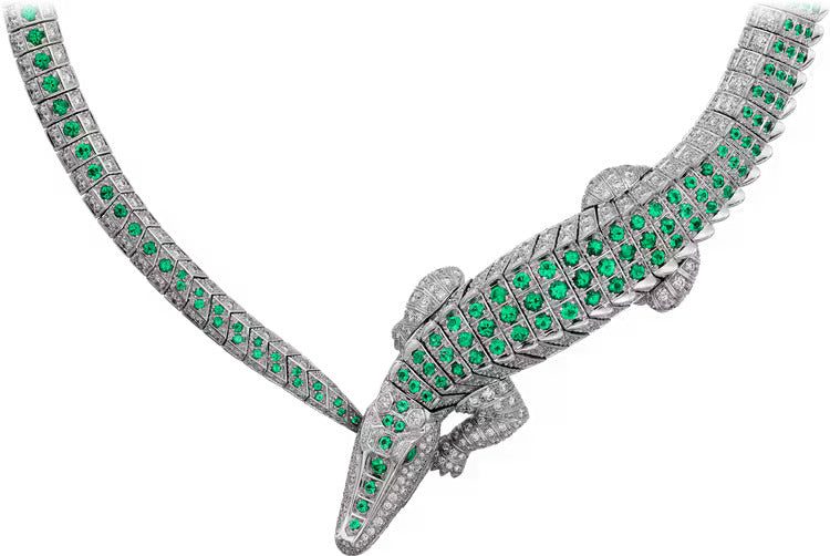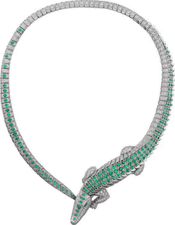 Cartier Fauna and Flora necklace, 18K white gold (750/1000), set with emeralds and 725 brilliant-cut diamonds totaling 15.15 carats.