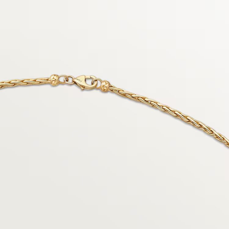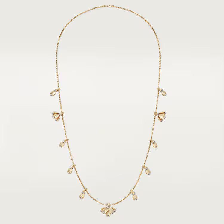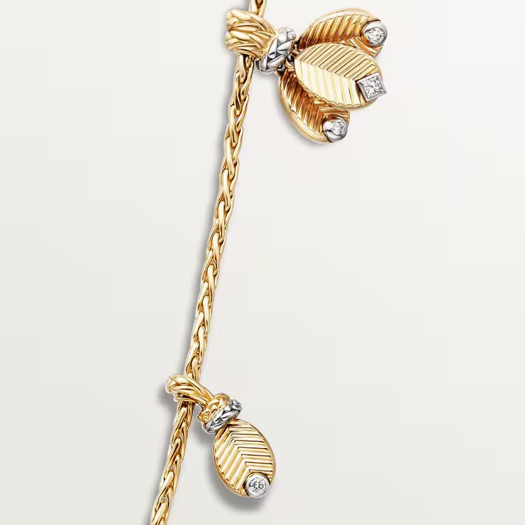 Grain de Café long necklace, 18K yellow gold (750/1000), 18K white gold (750/1000), set with 3 brilliant-cut diamonds and 16 princess-cut diamonds totaling 0.70 carats.