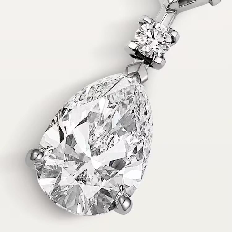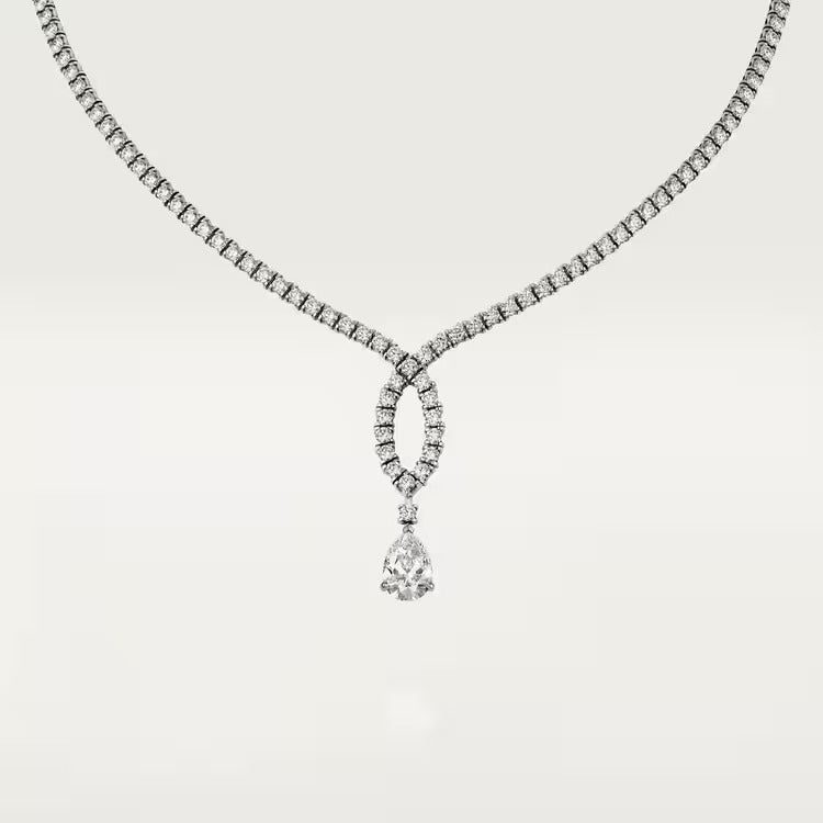 Necklace, white gold 750/1000, set with a pear-cut diamond available from 2.50 to 3.00 carats, and paved with brilliant-cut diamonds.