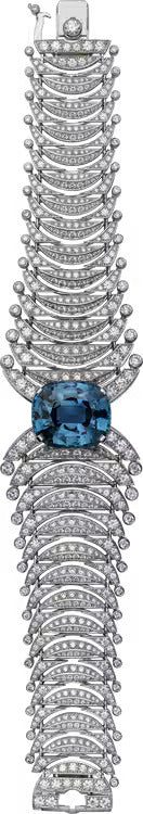 Bracelet - platinum, one 26.13-carat cushion-shaped sapphire, brilliant-cut diamonds.