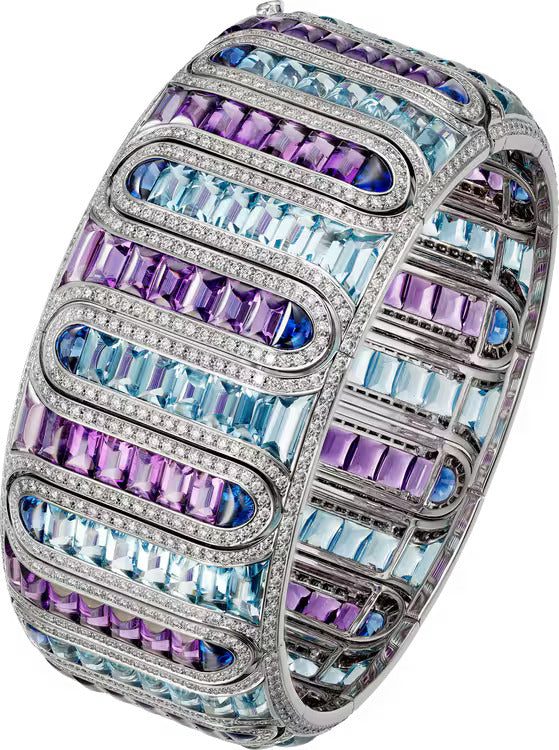 Bracelet - 18K white gold (750/1000), calibrated amethysts, calibrated aquamarines, calibrated sapphires, brilliant-cut diamonds.