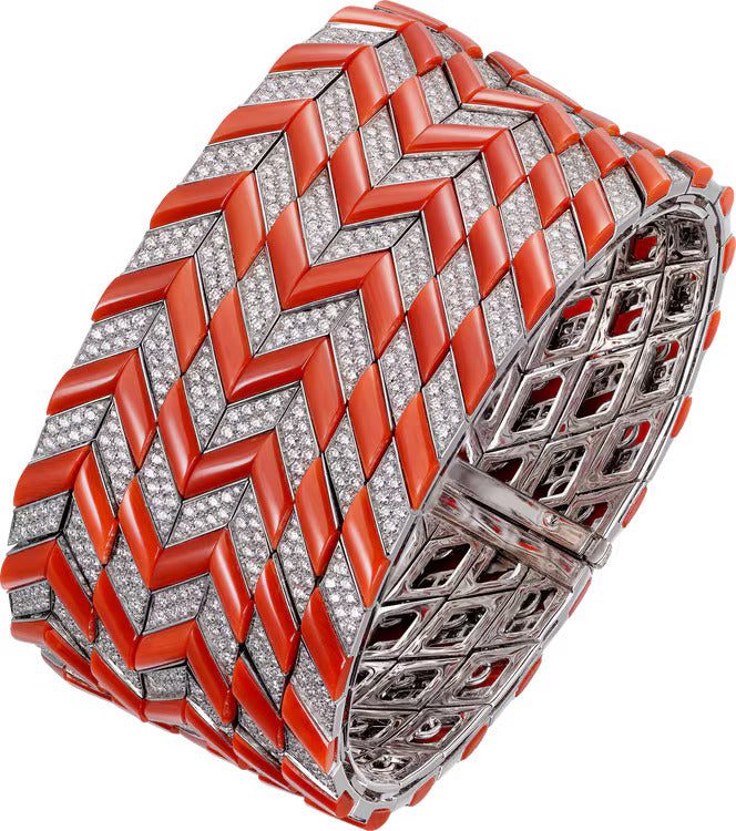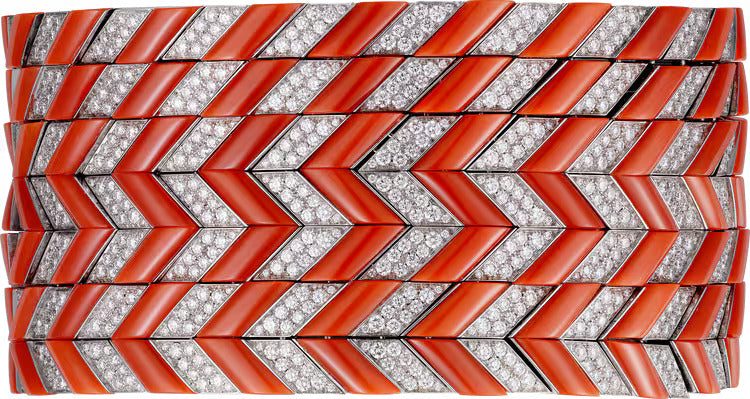 Bracelet - white gold (750/1000), coral, brilliant-cut diamonds.