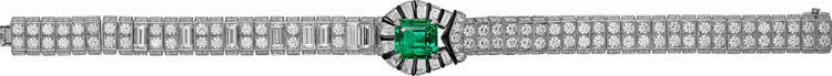 Bracelet - platinum, one 4.60-carat octagonal emerald from Zambia, onyx, baguette-cut diamonds, brilliant-cut diamonds.