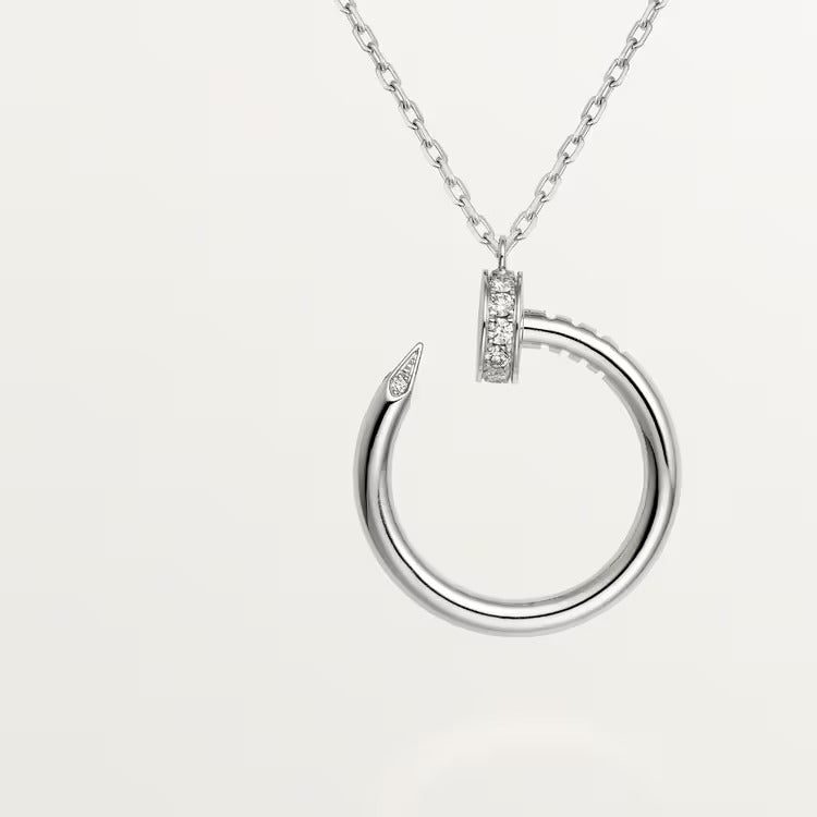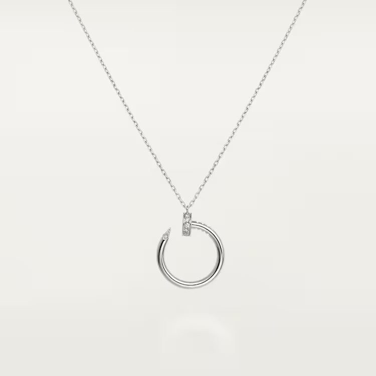 Juste un Clou necklace, 18K white gold (750/1000), set with 14 brilliant-cut diamonds totaling 0.12 carats. Width: 2.2 mm. Inner diameter: 14.2 mm. Adjustable chain length: 42-46 cm.