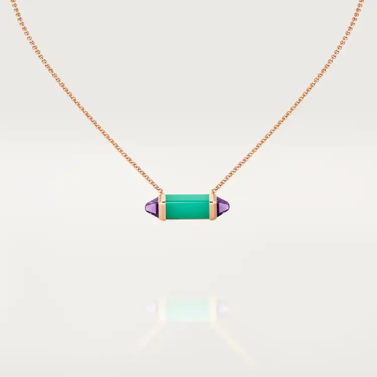 Les Berlingots de Cartier necklace, medium model, 18K rose gold (750/1000), chrysoprase, amethyst. Adjustable chain: 38-42cm.