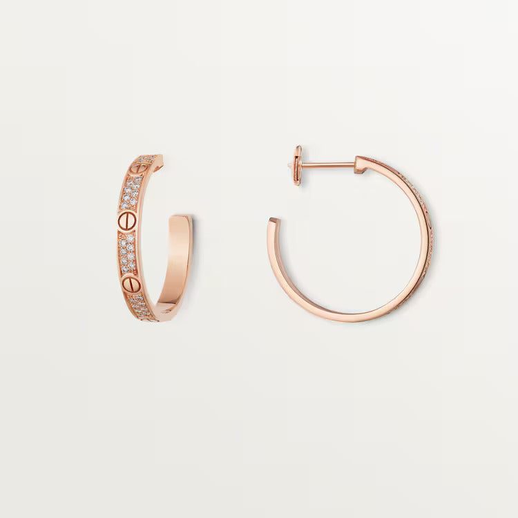 LOVE earrings, 18K rose gold (750/1000), each set with 48 brilliant-cut diamonds totaling 0.51 carat.