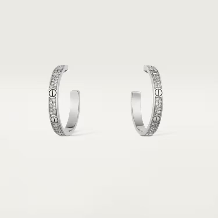 LOVE earrings, 18K white gold (750/1000), each set with 48 brilliant-cut diamonds totaling 0.51 carat.