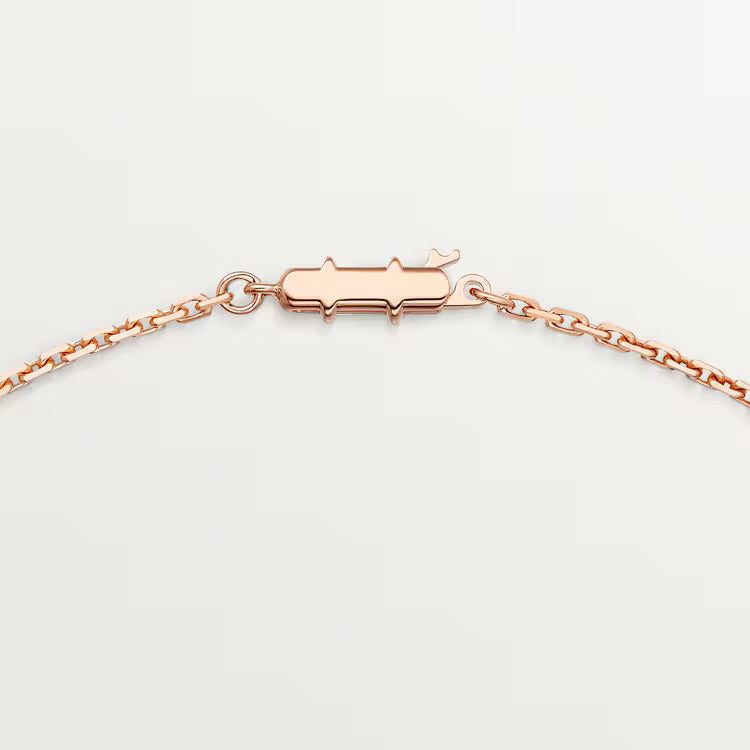 LOVE necklace, 18K rose gold (750/1000), set with 54 brilliant-cut diamonds totaling 0.34 carats. Inner diameter 15.95mm. Chain length: 420mm.