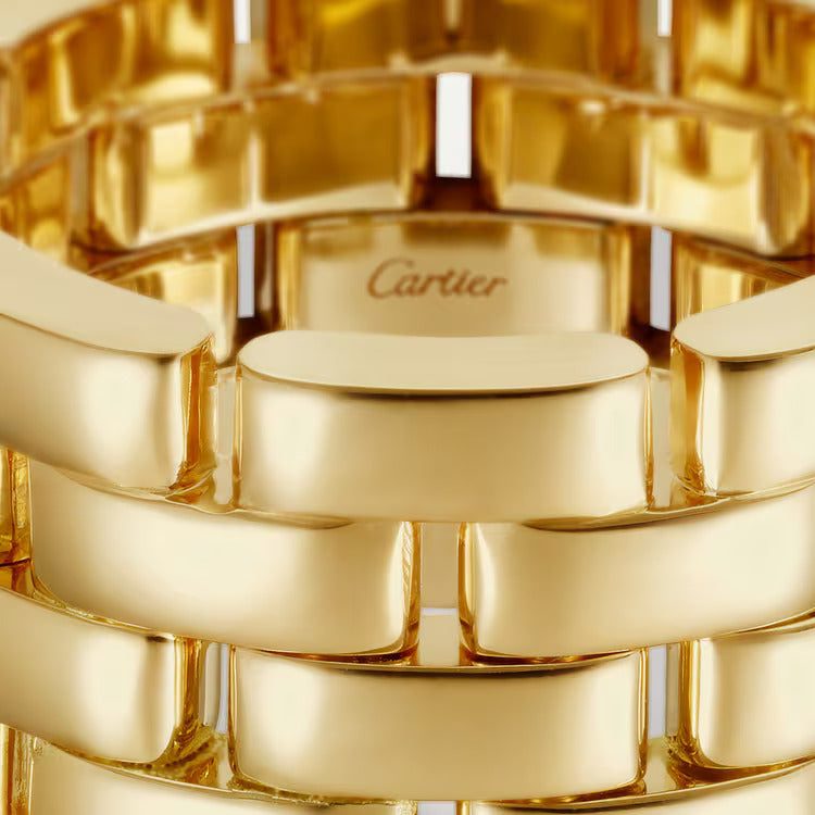 Maillon Panthère ring, yellow gold (750/1000). Width: 12.5 mm. Thickness: 2.4 mm (for size 52).