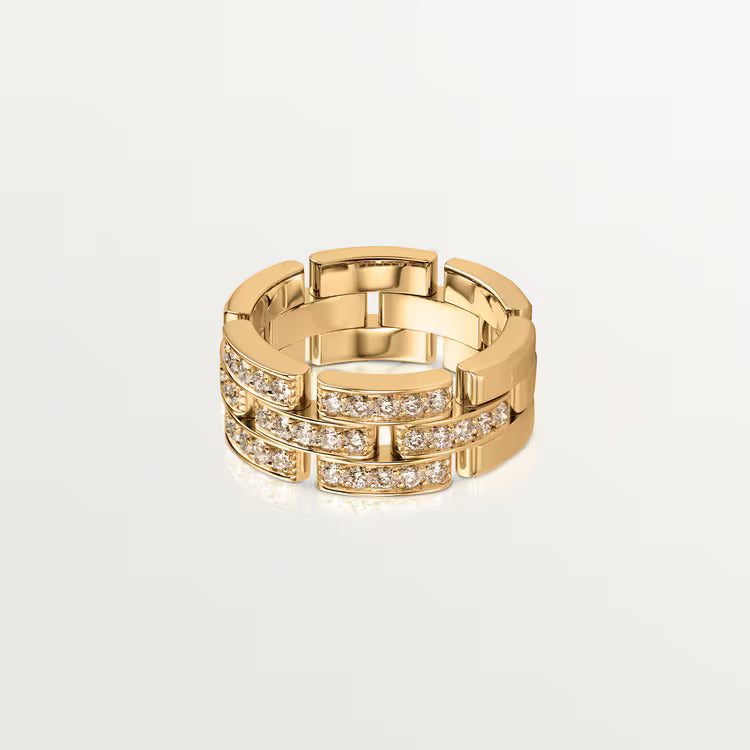 Maillon Panthère ring, yellow gold (750/1000), set with 35 brilliant-cut diamonds totaling 0.53 carat. Width: 7.8 mm. Thickness: 2.4 mm (for size 52).