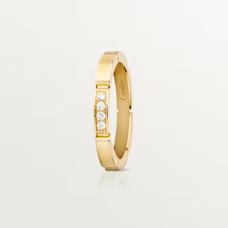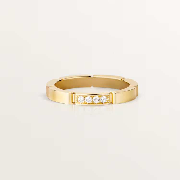 Maillon Panthère wedding ring, 18K yellow gold (750/100 ), set with 4 brilliant-cut diamonds for 0.05 carats. Width: 2.5 mm. Thickness: 2 mm (for size 52).