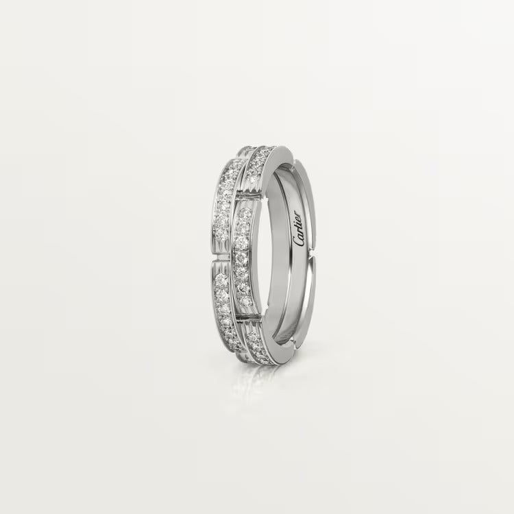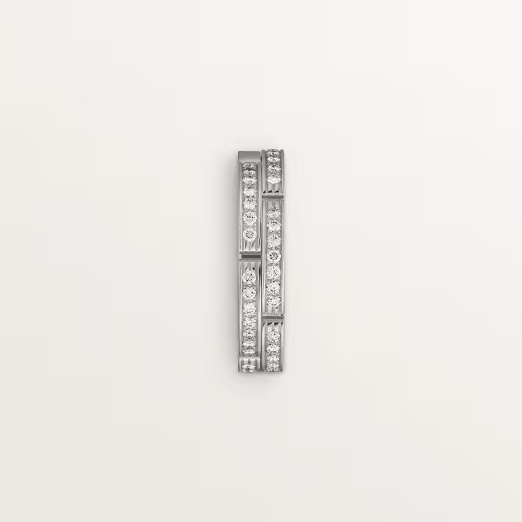 Maillon Panthère wedding band, white gold (750/1000), set with 42 brilliant-cut diamonds totaling 0.30 carat. Width: 4.2 mm. Thickness: 2.2 mm (for size 52).