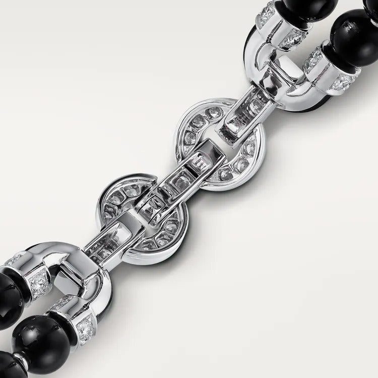 Panthère de Cartier bracelet, white gold (750/1000), coral, onyx, emeralds, set with 435 brilliant-cut diamonds totaling 3.16 carats.
