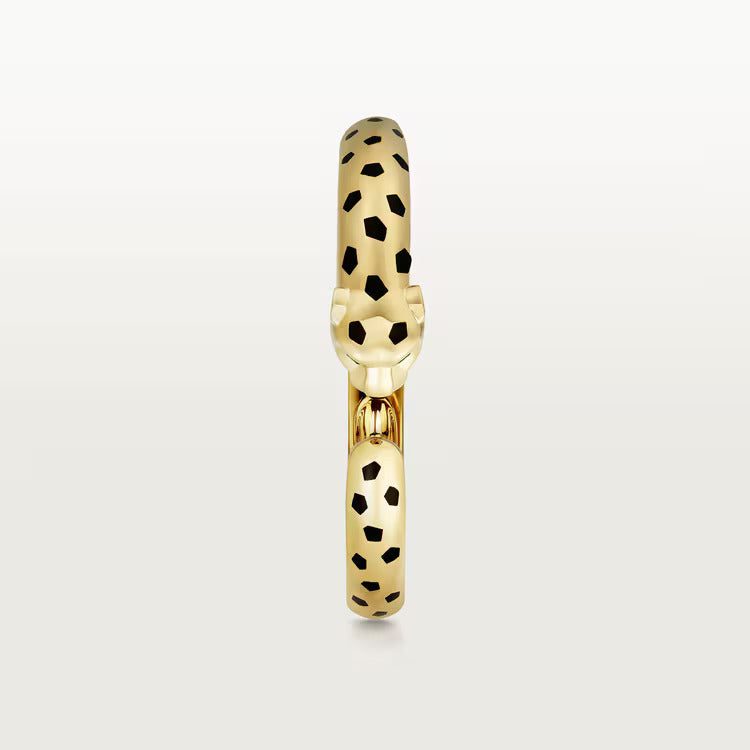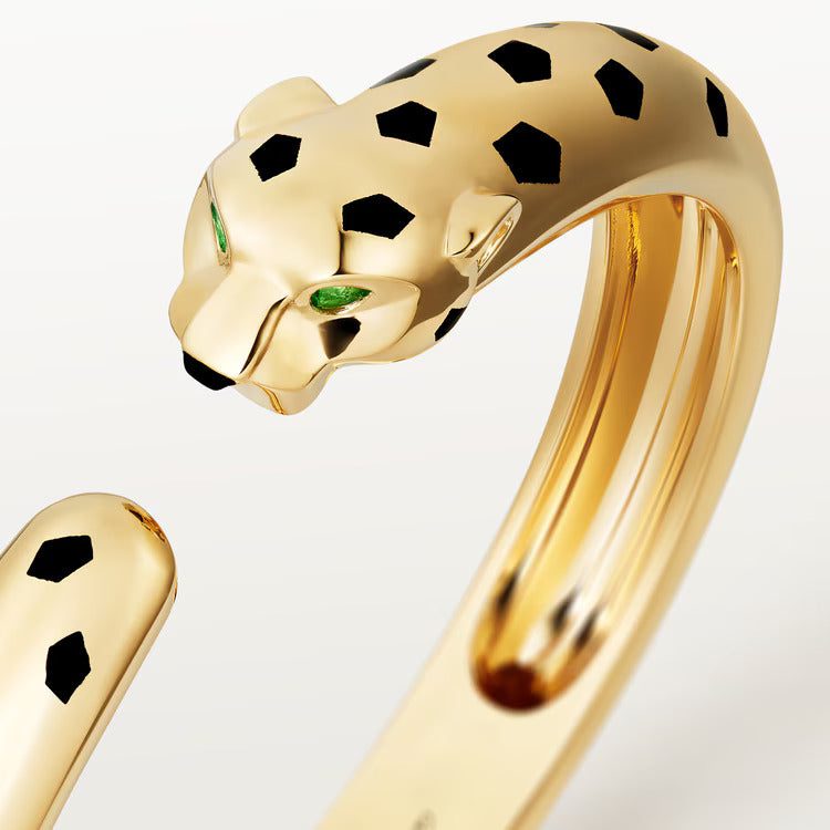 Panthère de Cartier bracelet, 18K yellow gold (750/1000), onyx, black lacquer, set with 2 tsavorite garnets. Width: 8.33 mm. Thickness: 4.7 mm (for size 17).