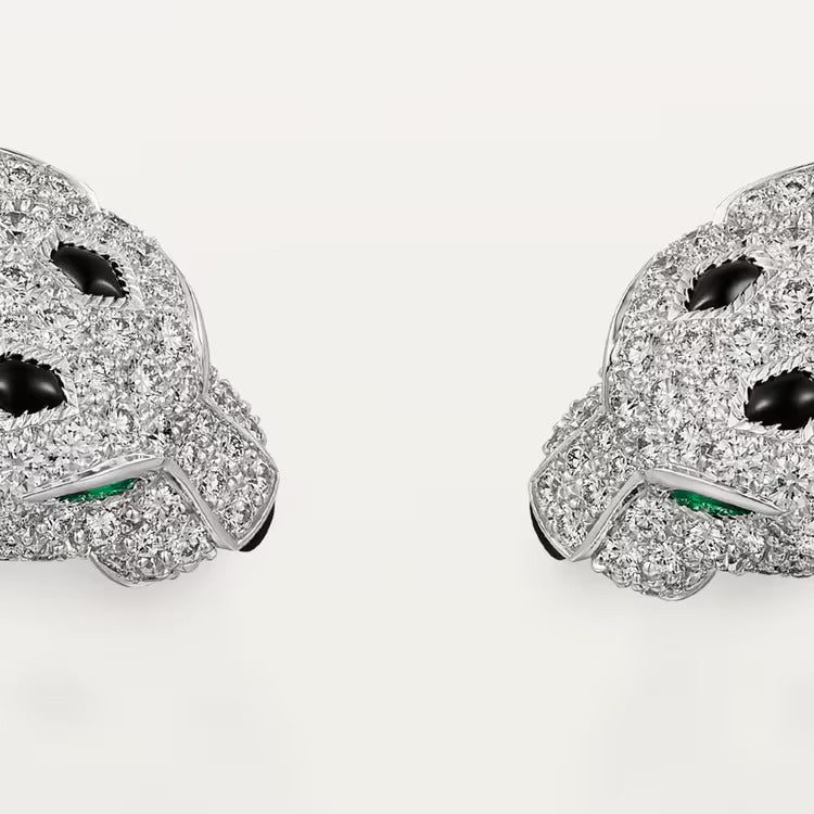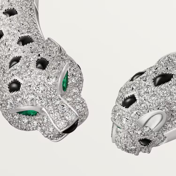 Panthère de Cartier necklace, white gold (750/1000), onyx, set with 4 emeralds and 1478 brilliant-cut diamonds totaling 10.53 carats.