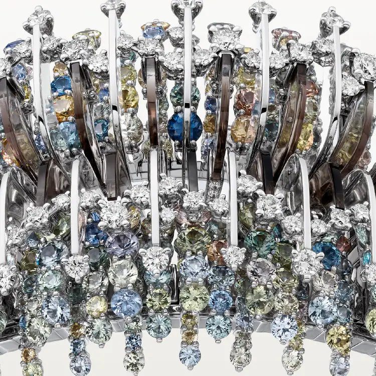 Polymorph Bracelet, 18K white gold (750/1000), set with quartz, sapphires and 296 diamonds totaling 4.8 carats (for size 16).