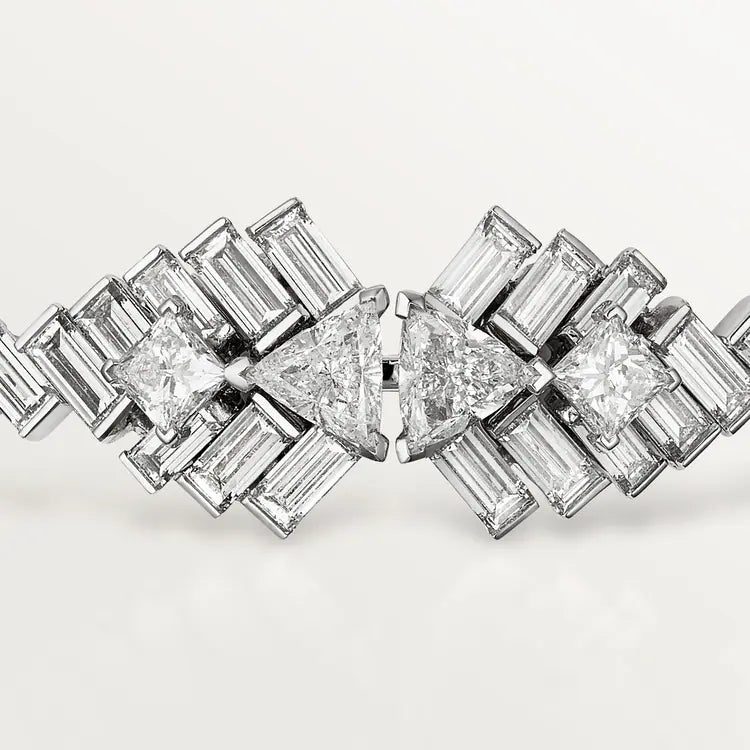 Reflection de Cartier bracelet, white gold (750/1000), set with 2 troidia-cut diamonds, 2 princess-cut diamonds and 79 baguette-cut diamonds totaling 5.28 carats (for size 17).