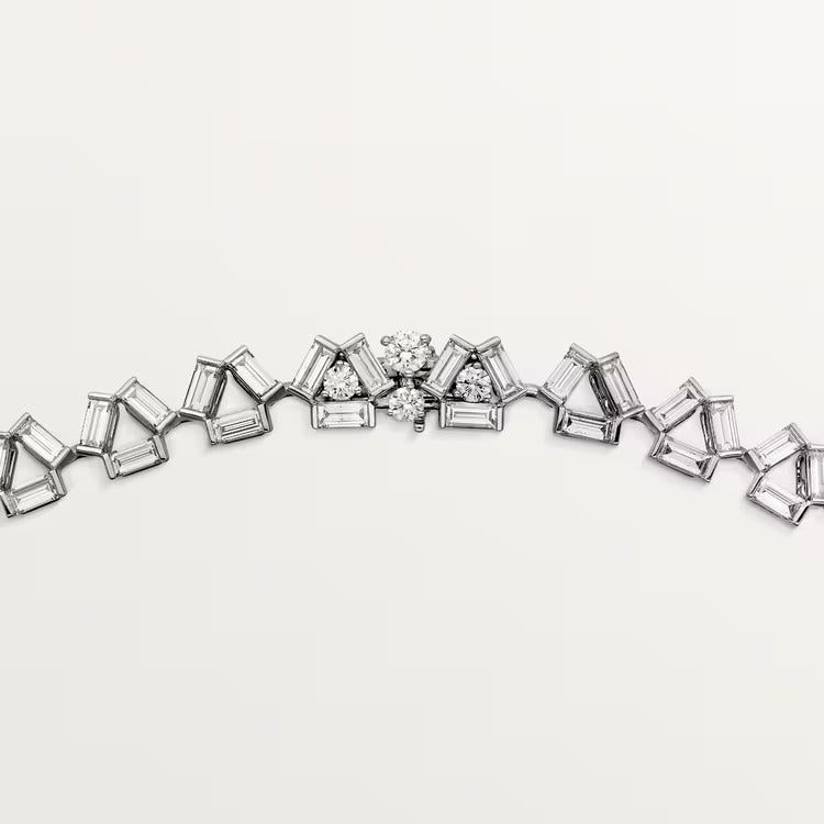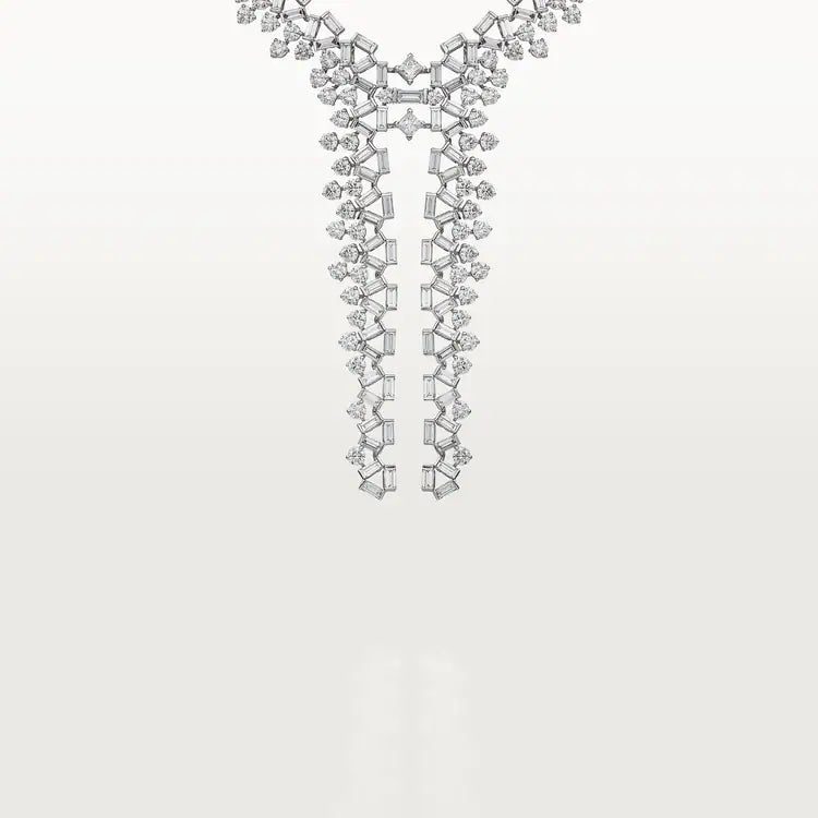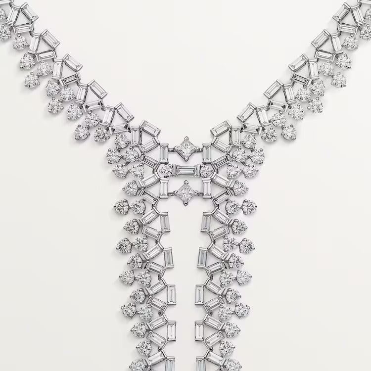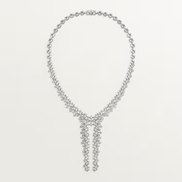 Reflection de Cartier necklace, white gold (750/1000), set with 2 princess-cut diamonds totaling 0.36 carat, and with 92 brilliant-cut diamonds totaling 8.38 carats and 215 baguette-cut diamonds totaling 15.61 carats.