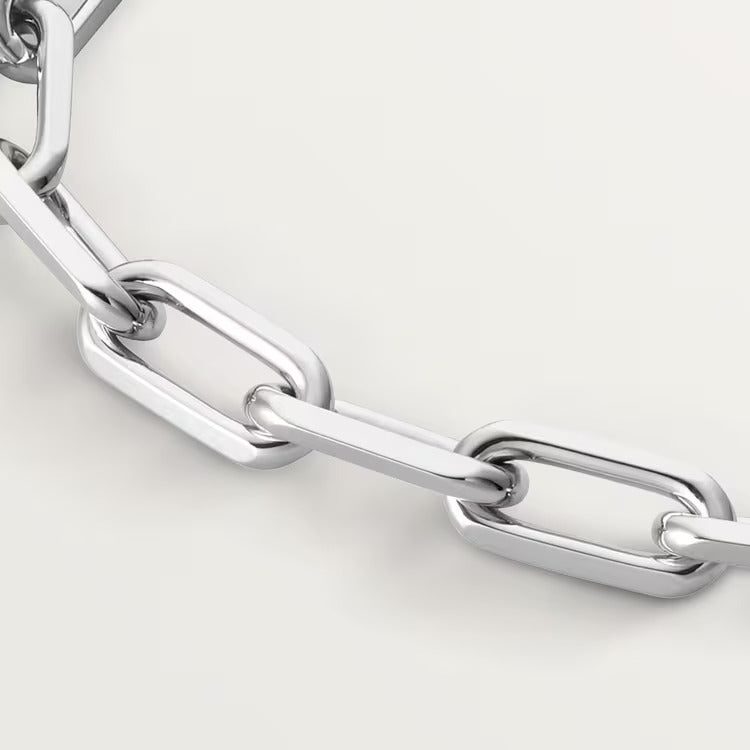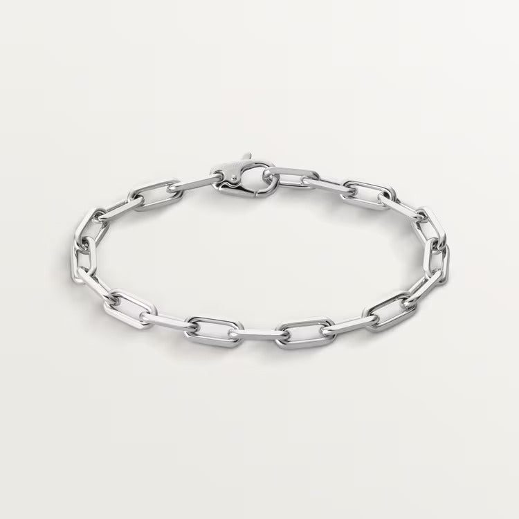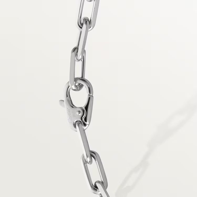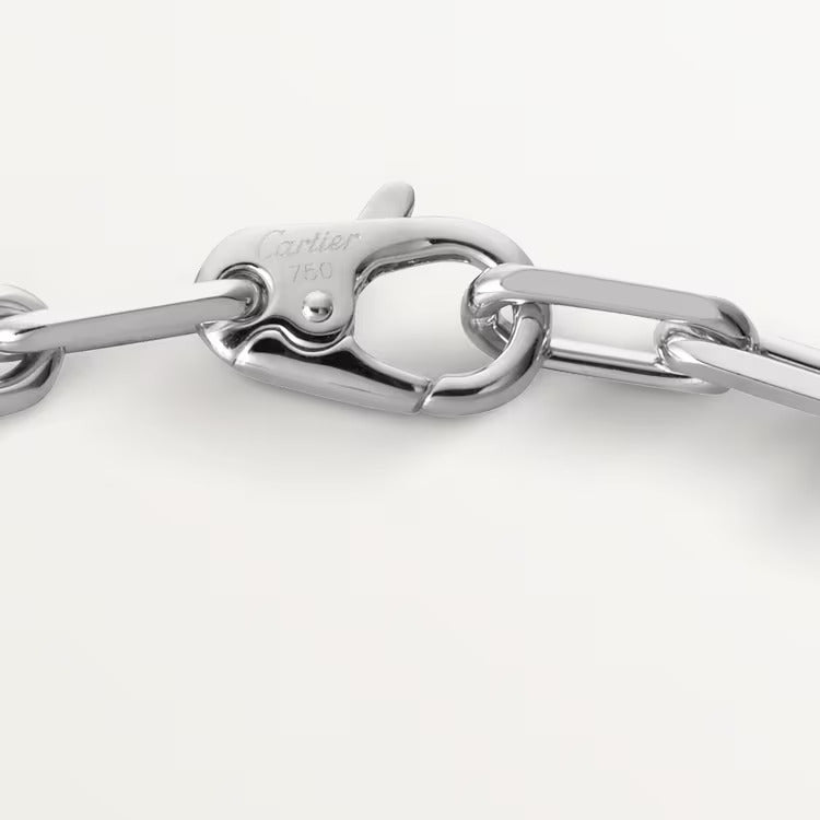 Santos de Cartier bracelet, medium model, non-rhodiumized finish 18K white gold (750/1000). Chain length: 20 cm.