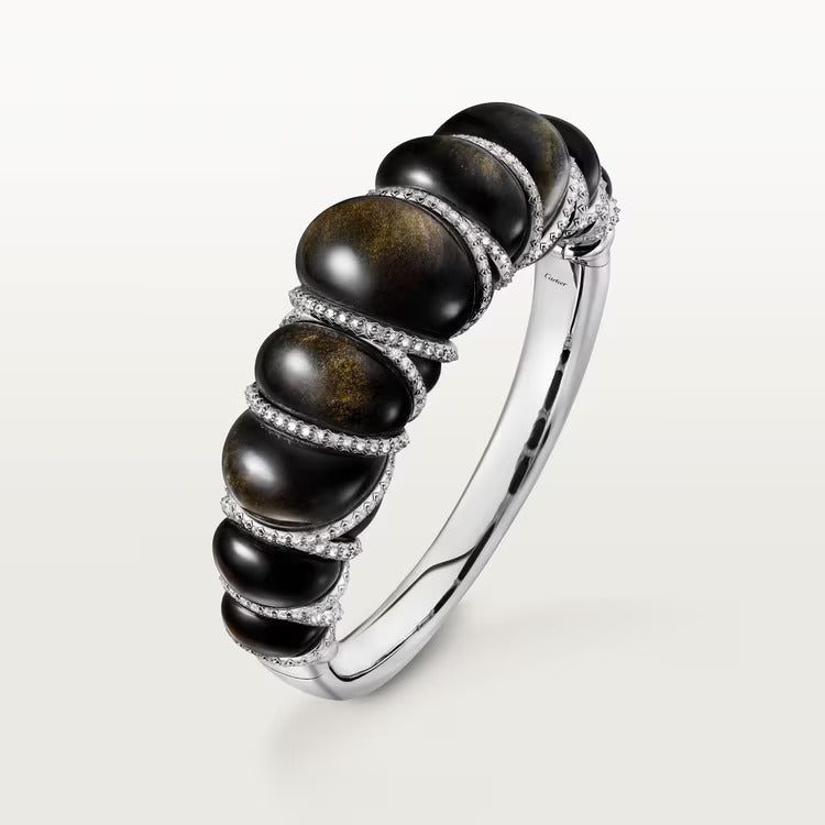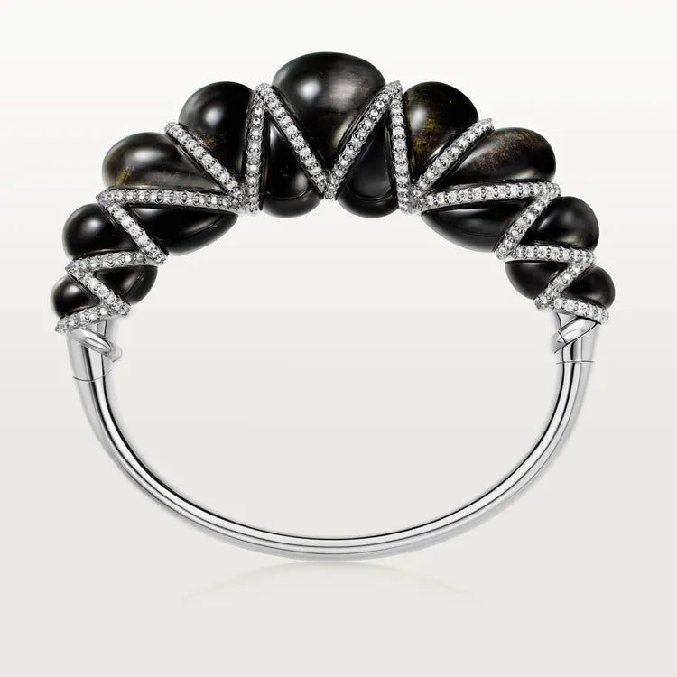 Tressage bracelet, platinum 950/1000, set with 15 obsidians and 339 brilliant-cut diamonds totaling 3.36 carats (for size 17).