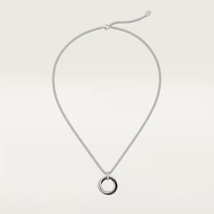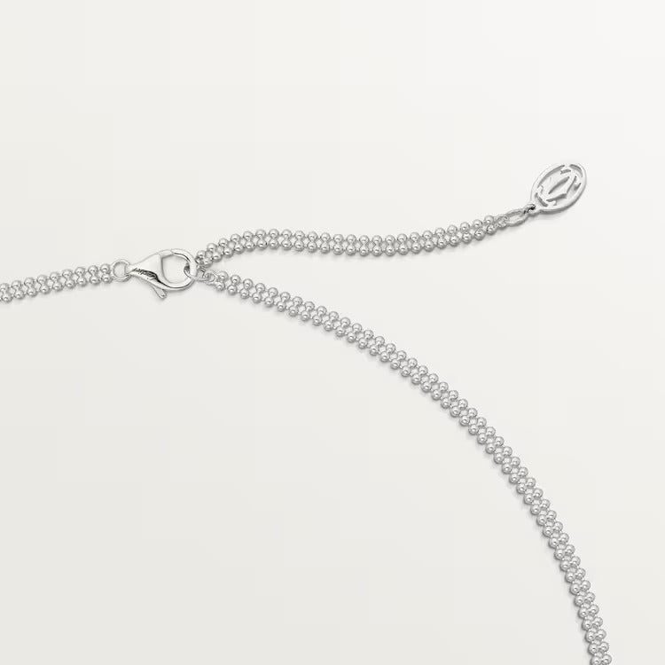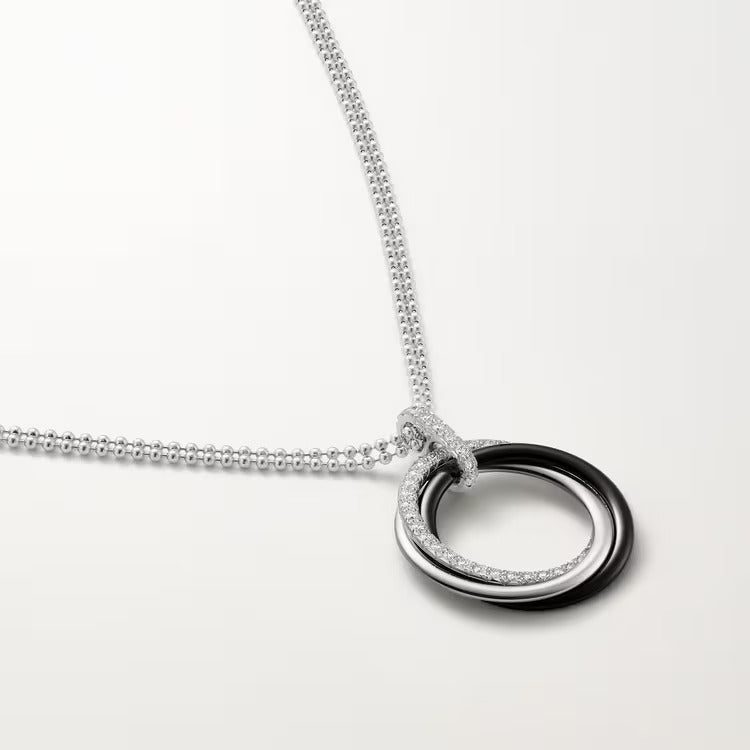 Trinity necklace, 18K white gold (750/1000), black ceramic, set with 46 brilliant-cut diamonds totaling 0.35 carats. Inner diameter: 20.8 mm. Adjustable chain length: 42-46 cm.