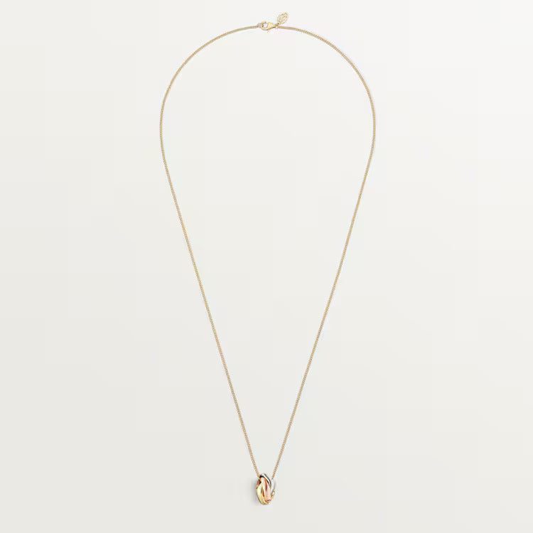 Trinity necklace, 18K white gold (750/1000), 18K rose gold (750/1000), 18K yellow gold (750/1000), 18K yellow gold (750/1000) chain. Chain length: 60 cm.