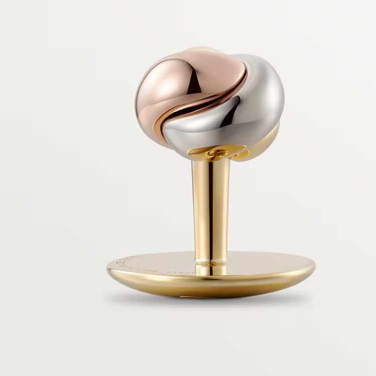 Trinity shirt studs in solid 18K yellow gold (750/1000), rose gold 750/100 and 18K white gold (750/1000). Head diameter: 8 mm.
