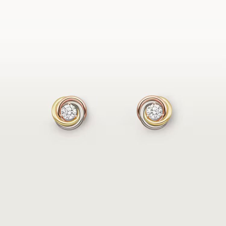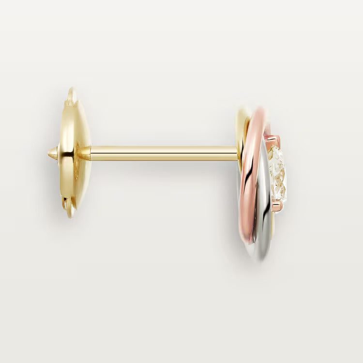 Trinity earrings, 18K white gold (750/1000), 18K rose gold (750/1000), 18K yellow gold (750/1000), each set with 1 brilliant-cut diamond totaling 0.35 carats.