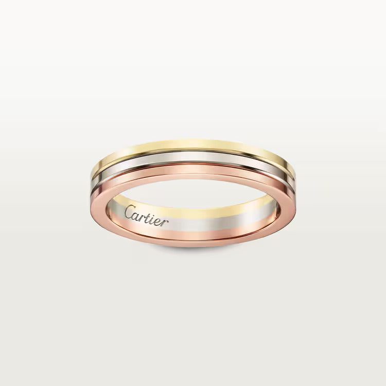 Vendôme Louis Cartier Wedding Band, rose gold (750/1000), white gold (750/1000), yellow gold (750/1000). Width: 3.5 mm (for size 52).