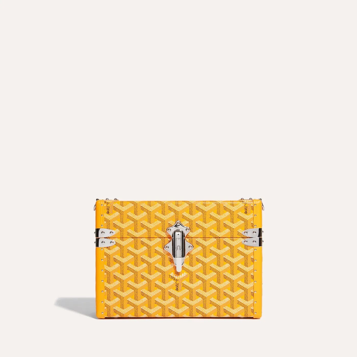 The Cassette Trunk expresses the innovative timelessness typical of Goyard, and stems from the Maison's seminal trades: trunk making and leather goods. Thanks to its clasp and compact size, its ideal for keeping everyday essentials safe and combines elegance, refinement and a lightness. Thanks to its additional strap, the bag can be worn in several different ways.
