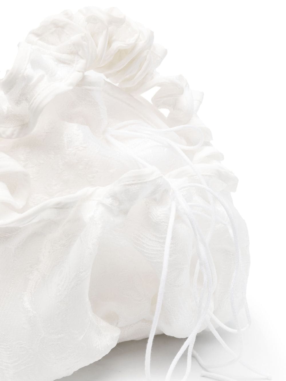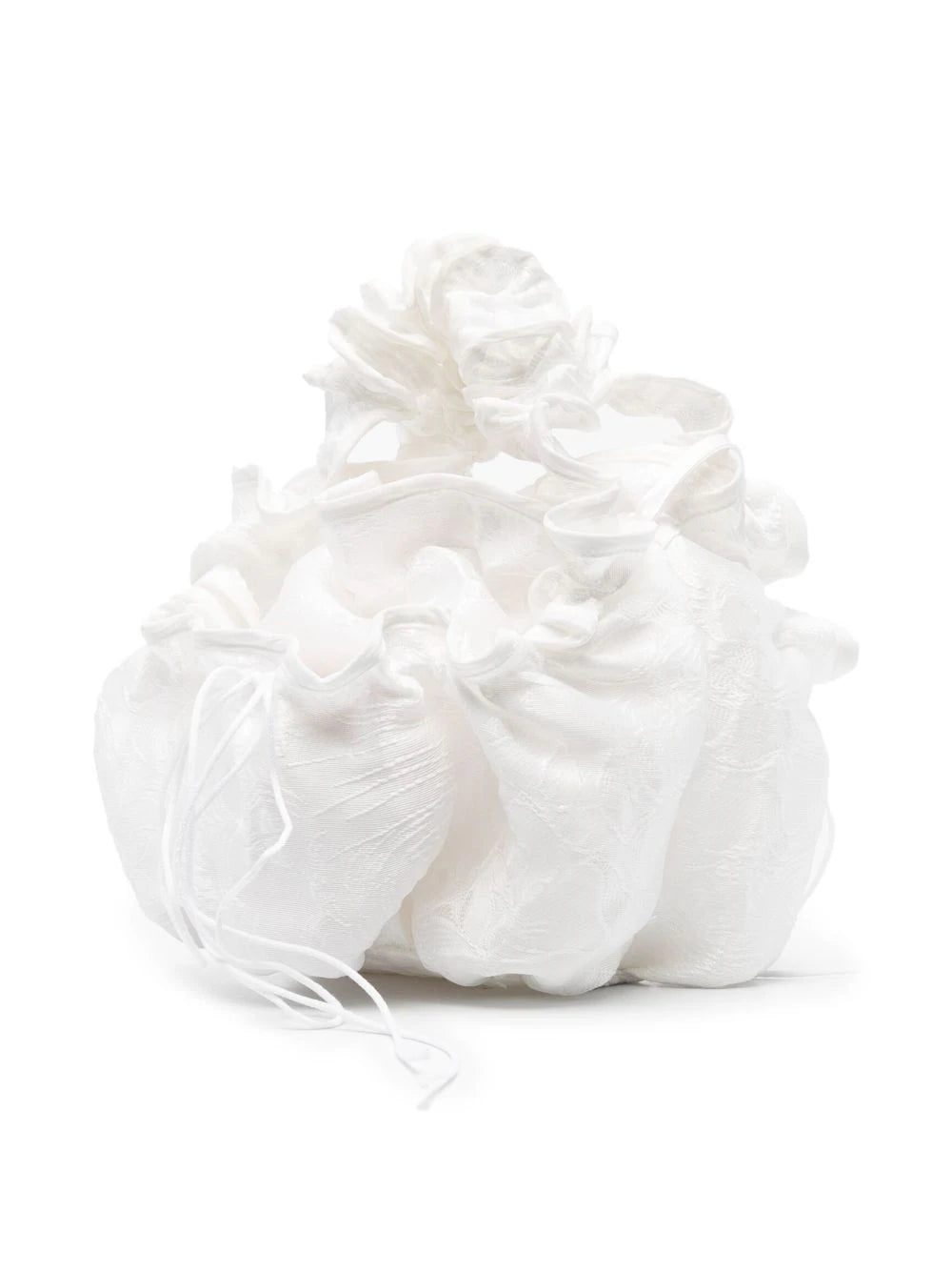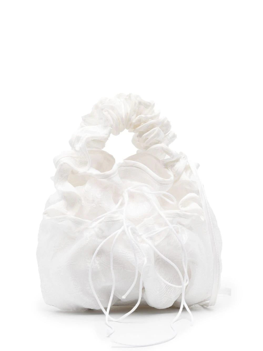 Crafted from silk tulle and decorated with a blanche jacquard, this Kiku bag from Cecilie Bahnsen serves as a celebration of the brand's romantic style. The ruffled handles are adjusted by wispy bows straps to fasten, and a thin shoulder strap completes the features.
