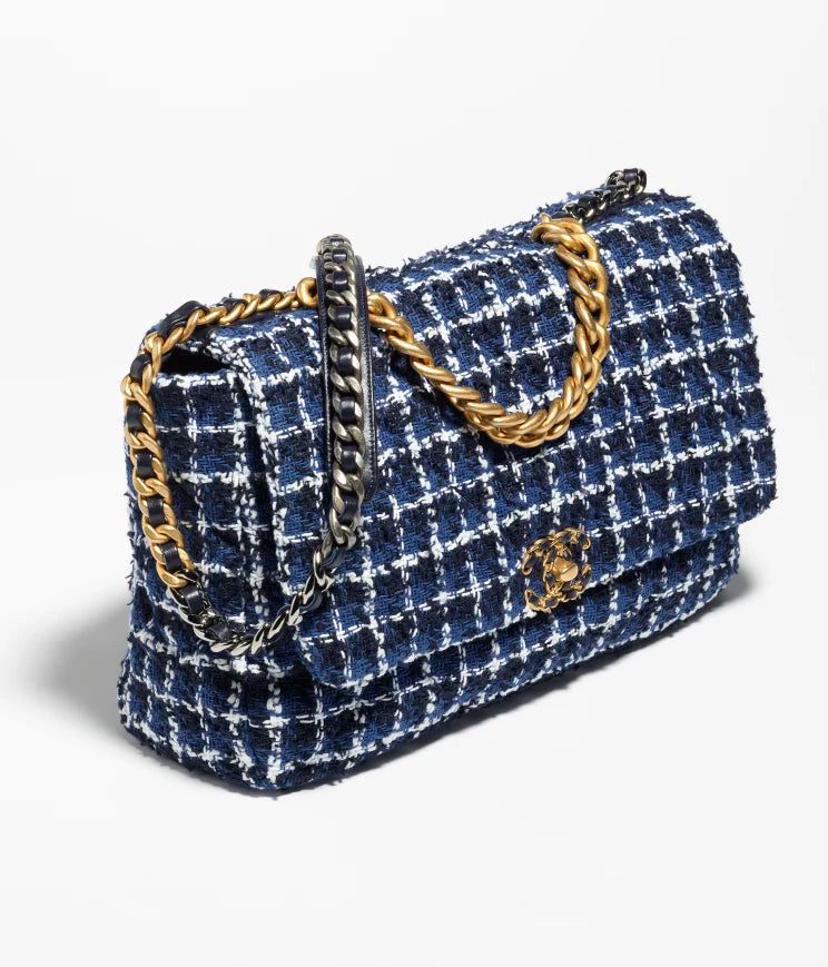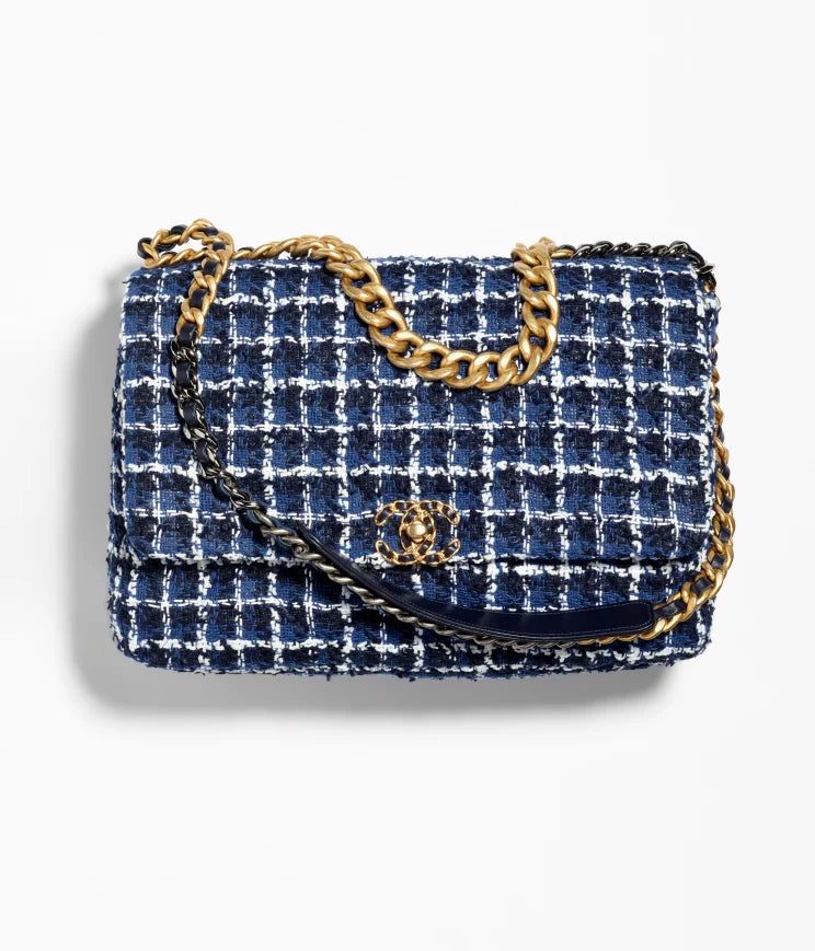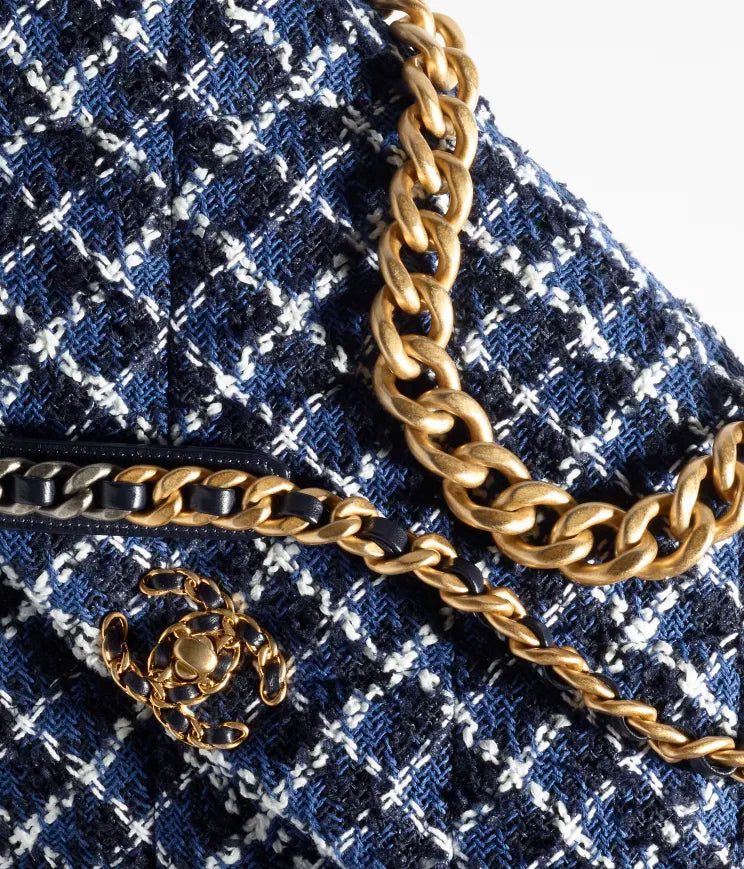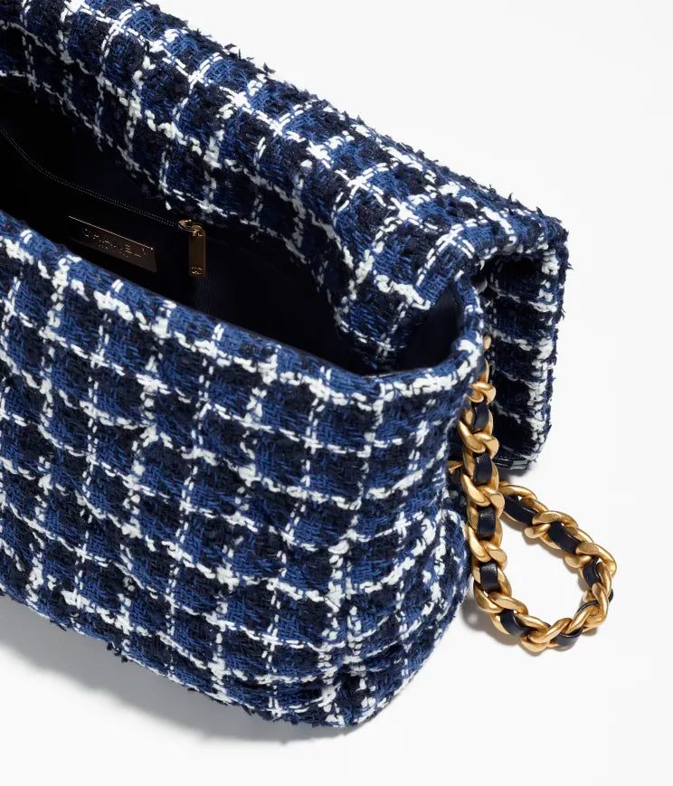 Cotton Tweed, Gold-tone, Silver-Tone & Ruthenium-Finish Metal Blue, White & Navy Blue