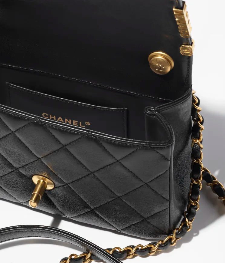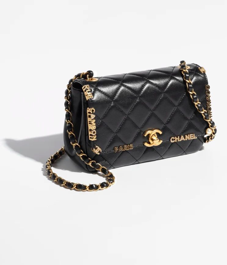 Lambskin, Enamel, Strass & Gold-Tone Metal Black