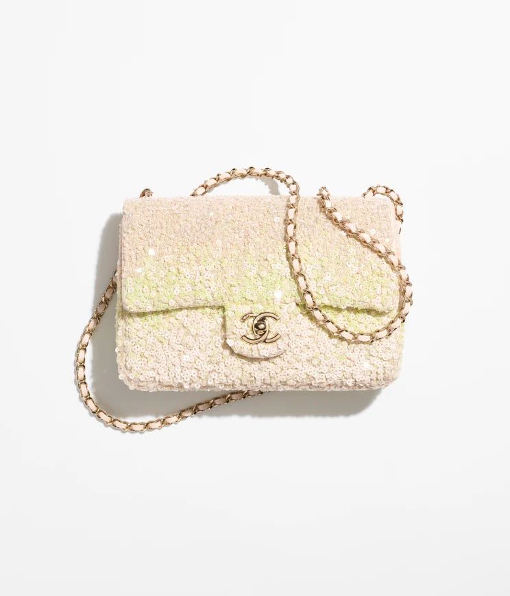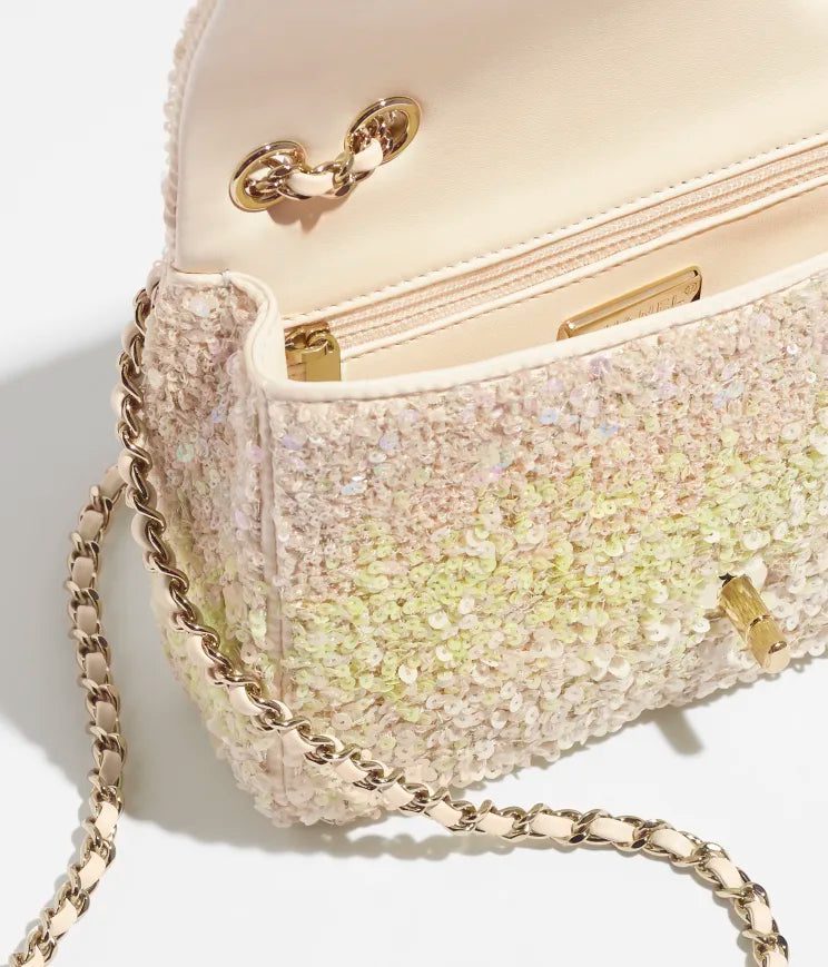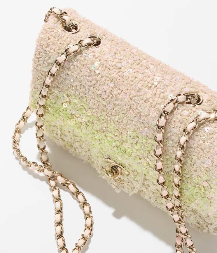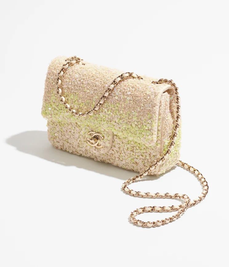 Shaded Sequins & Gold-Tone Metal Light Green, White & Ecru