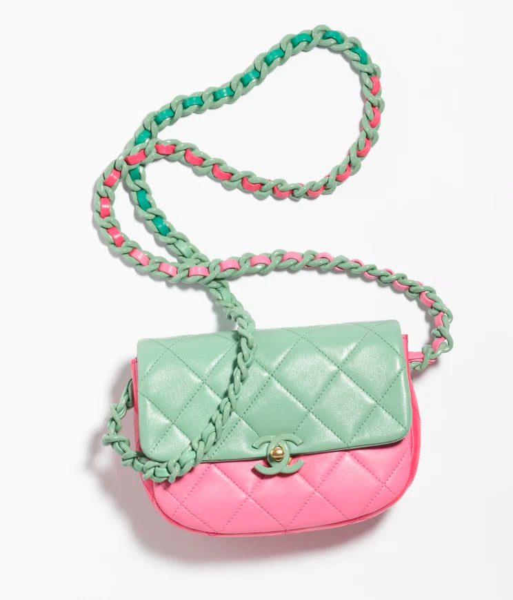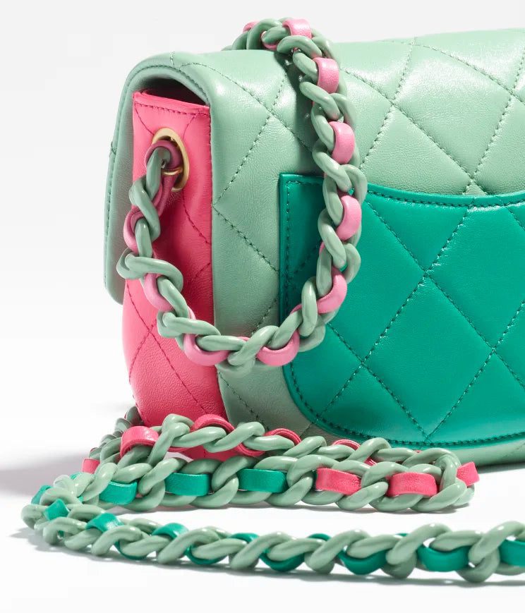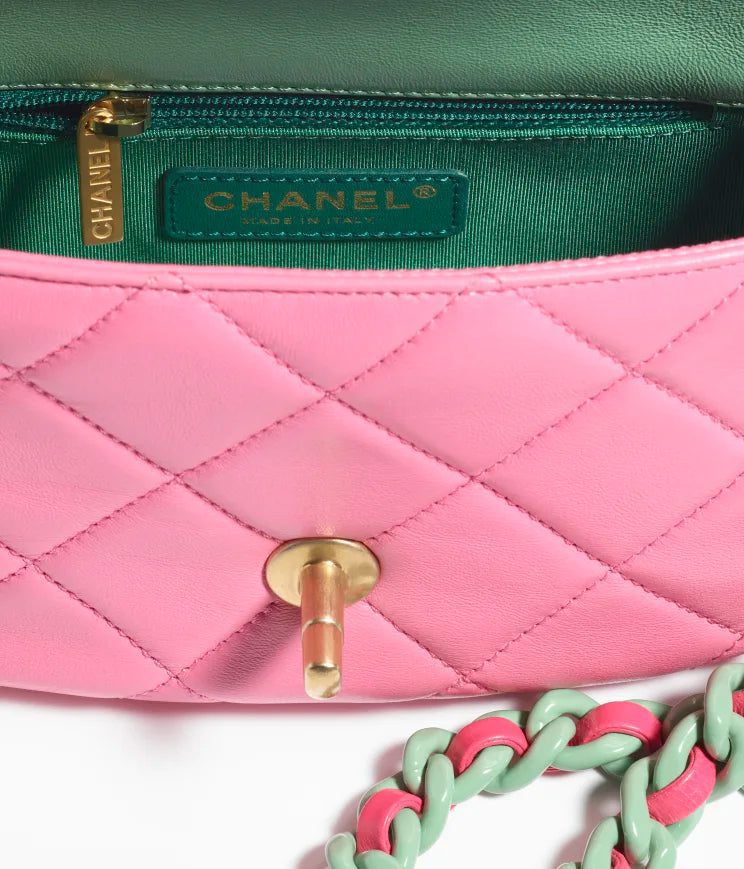 Shiny Lambskin & Lacquered Metal Light Green, Light Pink, Pink & Green