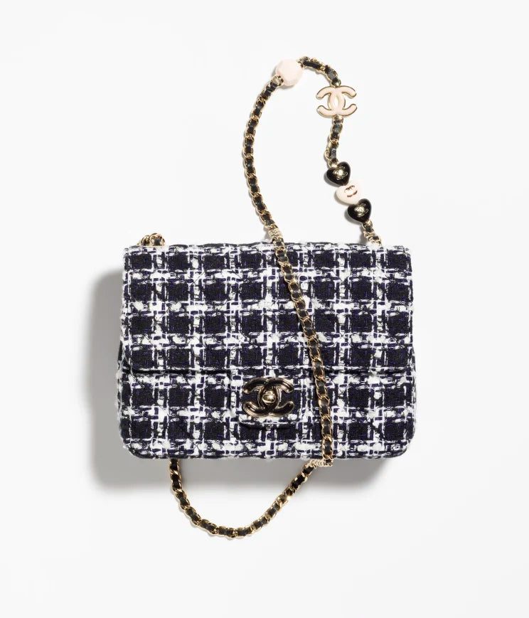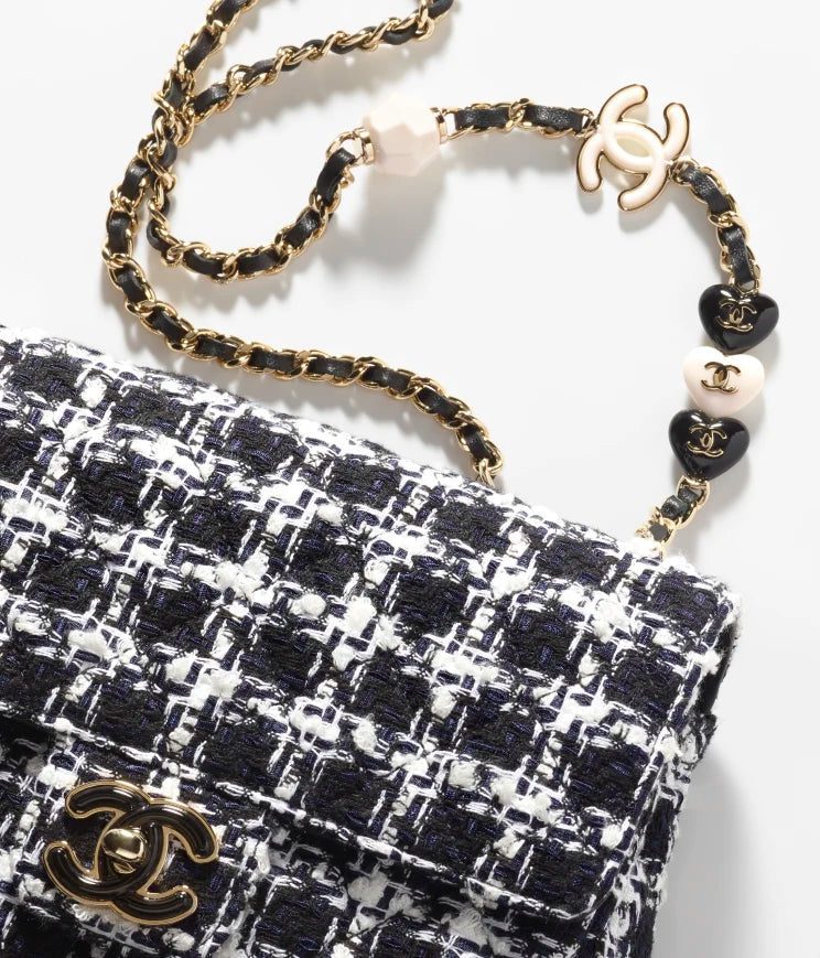 Tweed, Resin & Gold-Tone Metal Black, White & Navy Blue