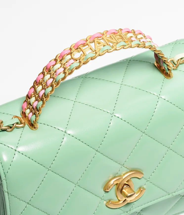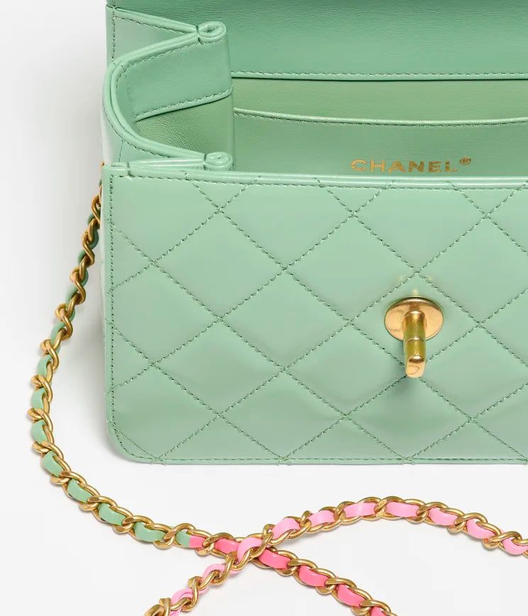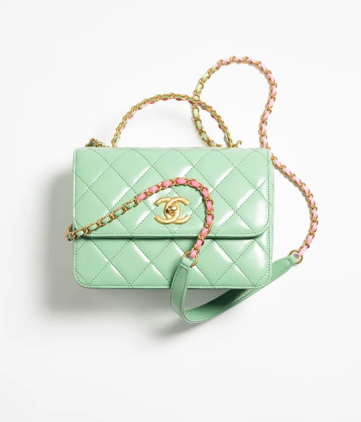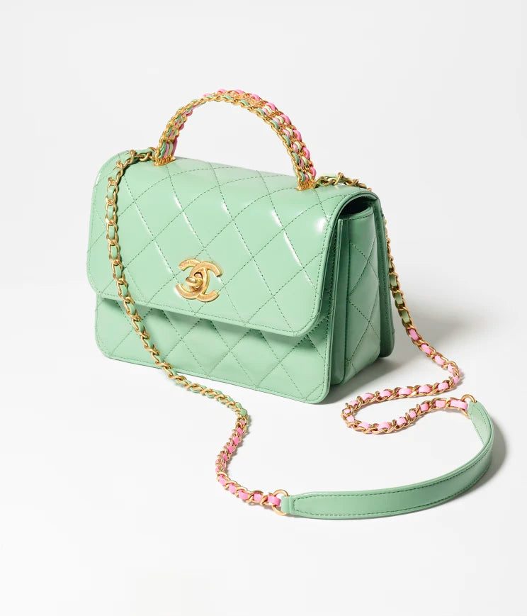 Shiny Calfskin & Gold-Tone Metal Light Green