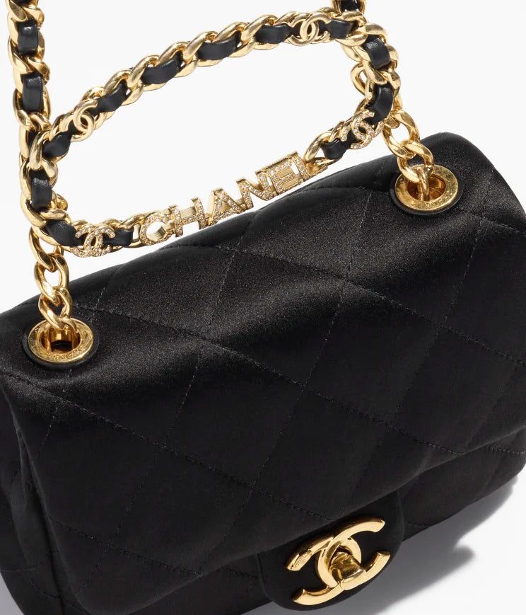 Mixed Fibers, Silk, Strass & Gold-Tone Metal Black