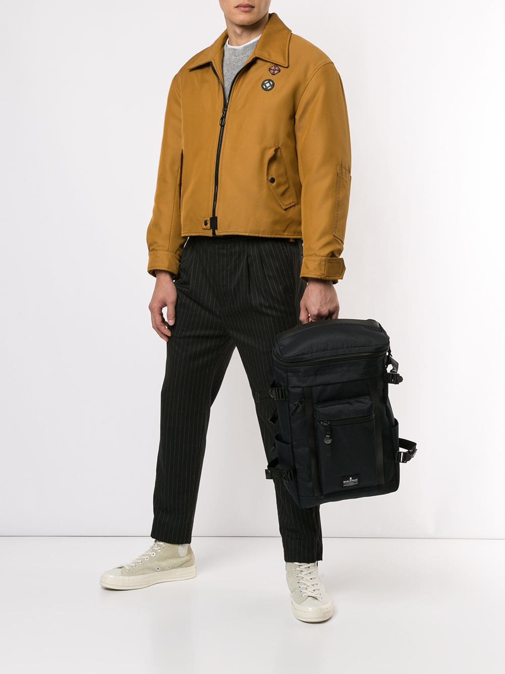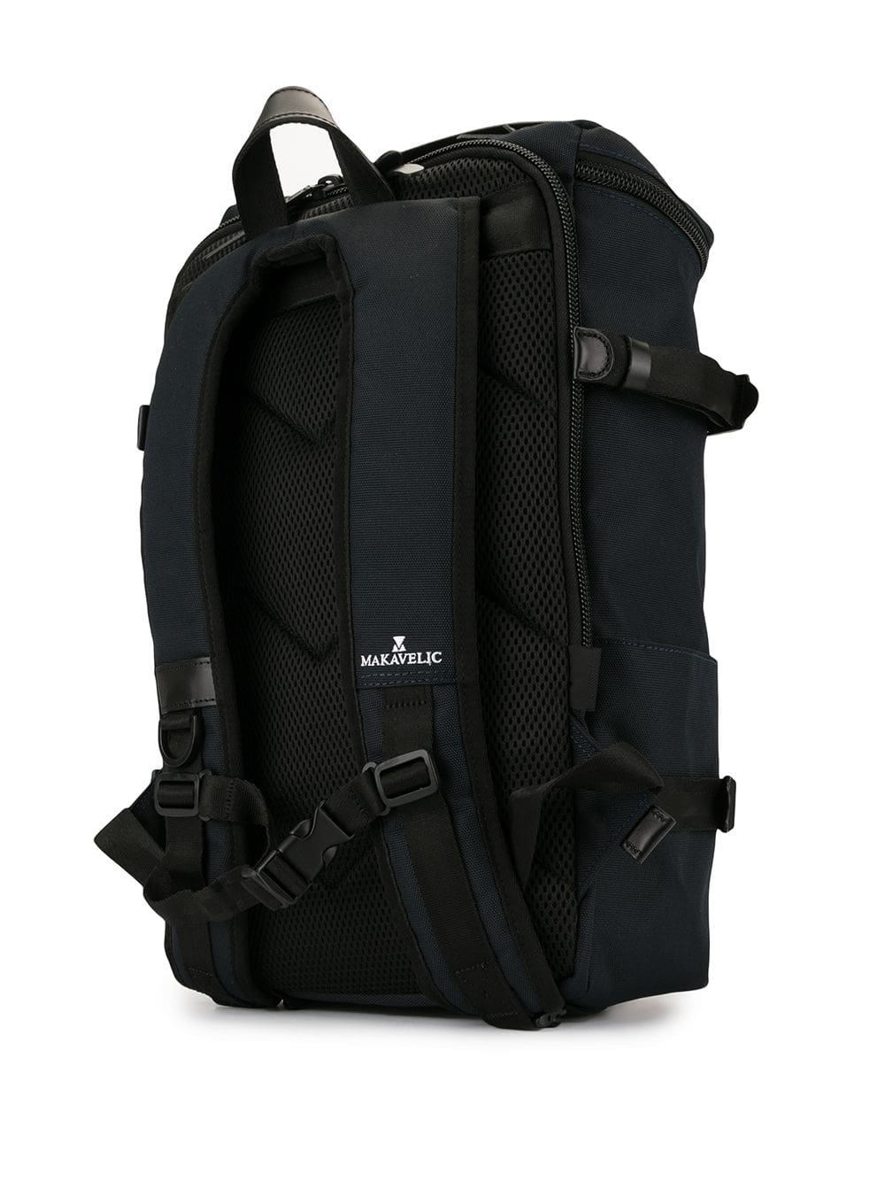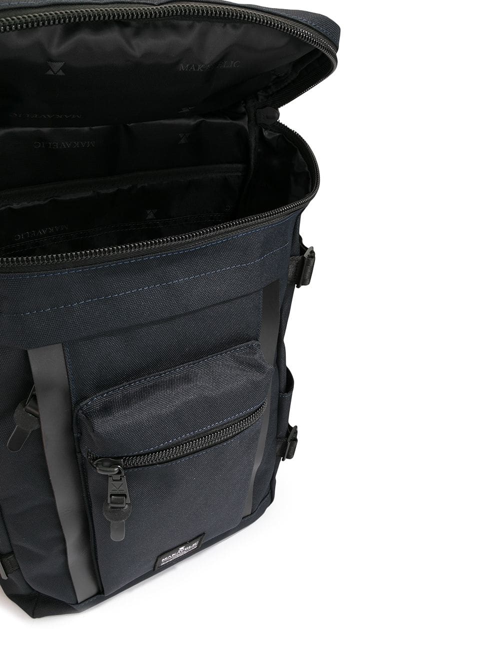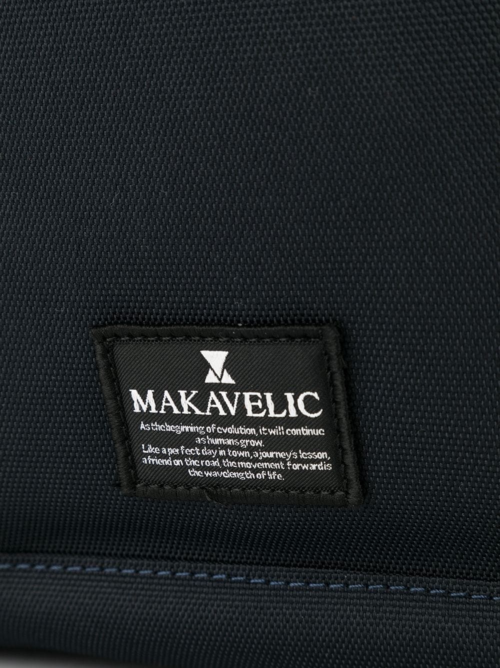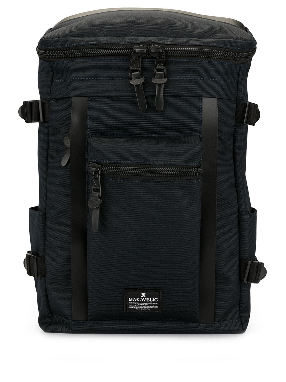 Black Chase Rect. Day Pack from MAKAVELIC featuring an adjustable shoulder strap, front zipped pockets, a front logo patch, a buckle fastening and a round top handle.