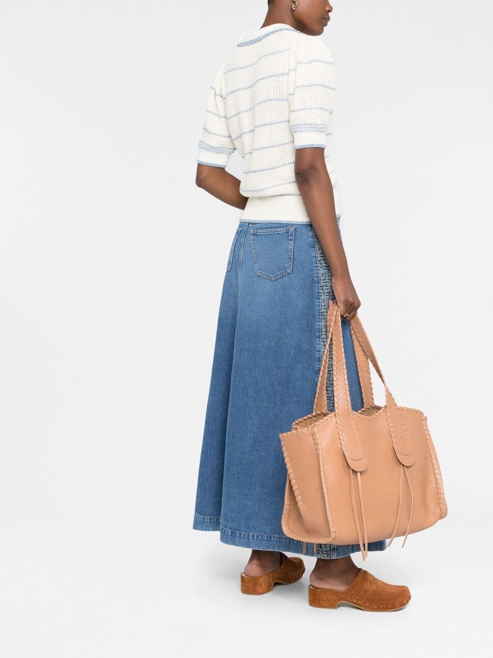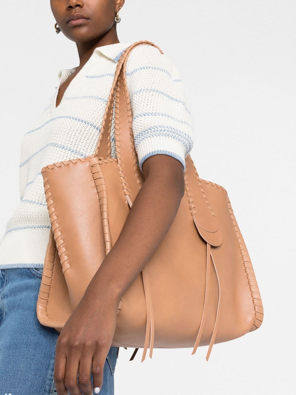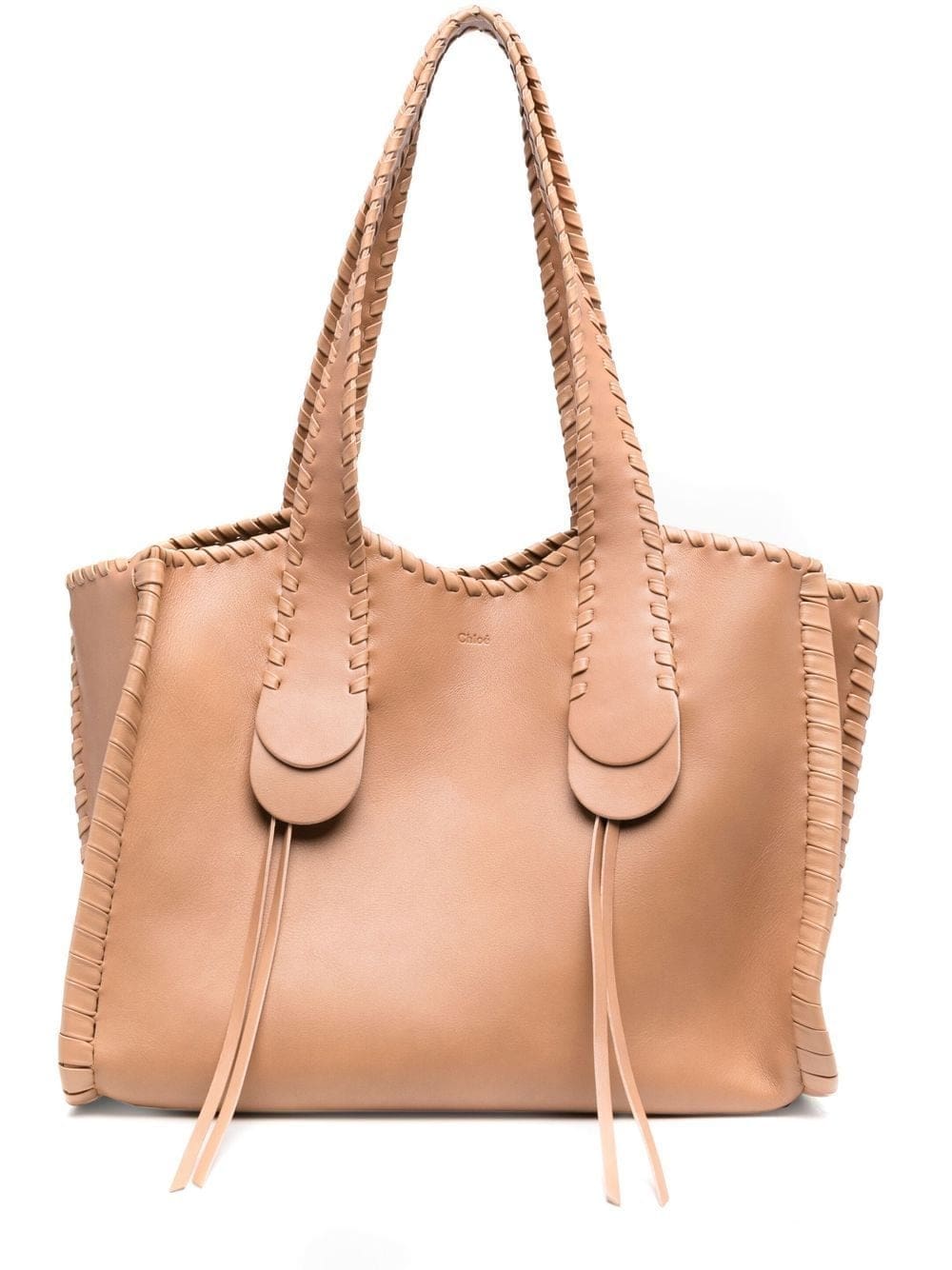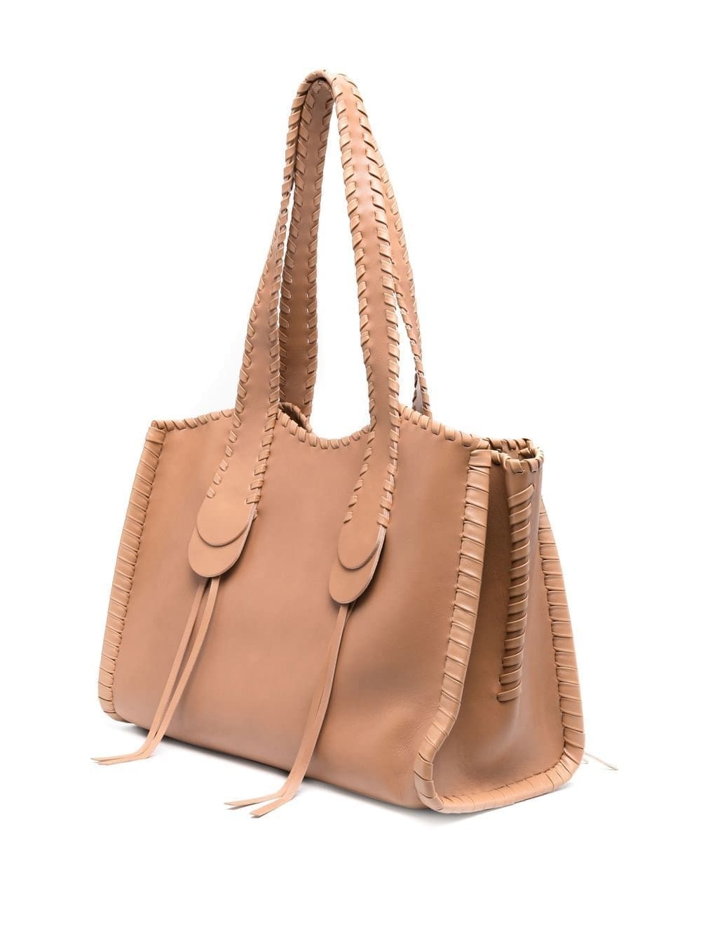 Chloé's Mony line showcases the brand's sophisticated leather craftsmanship. As illustrated by this large iteration, made from smooth calf leather with suede lining, the brand's trademark whipstitch detailing is intertwined - highlighting the intricacy of its design.