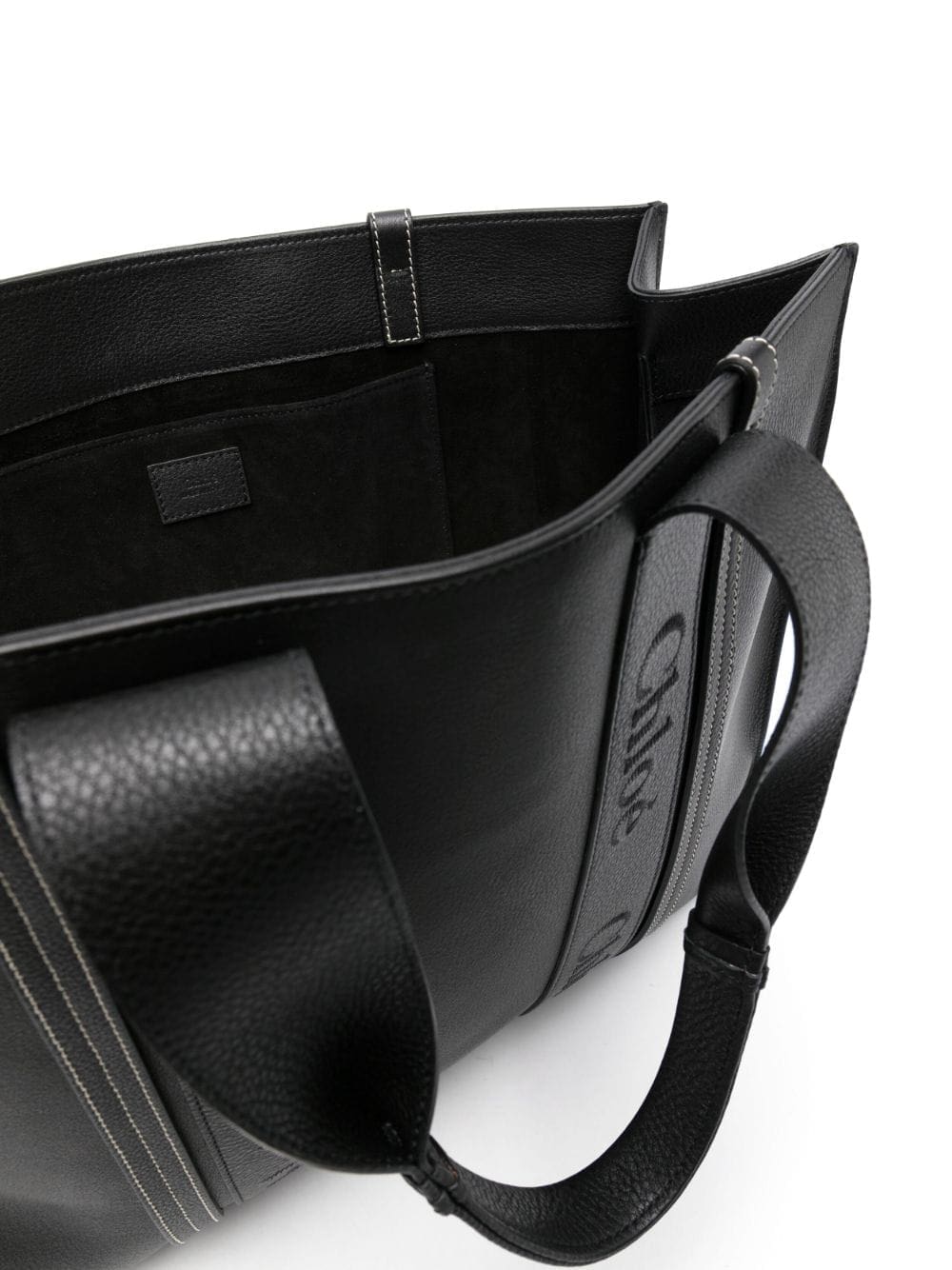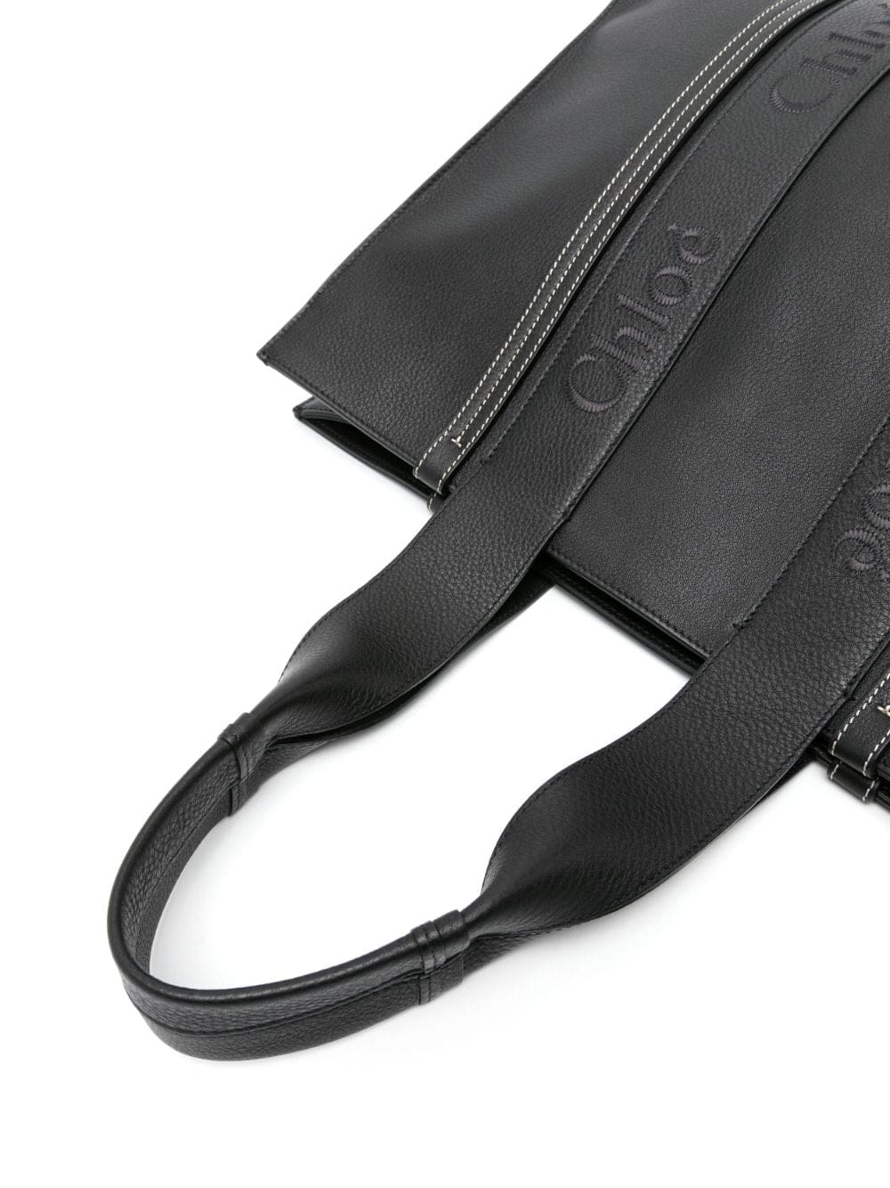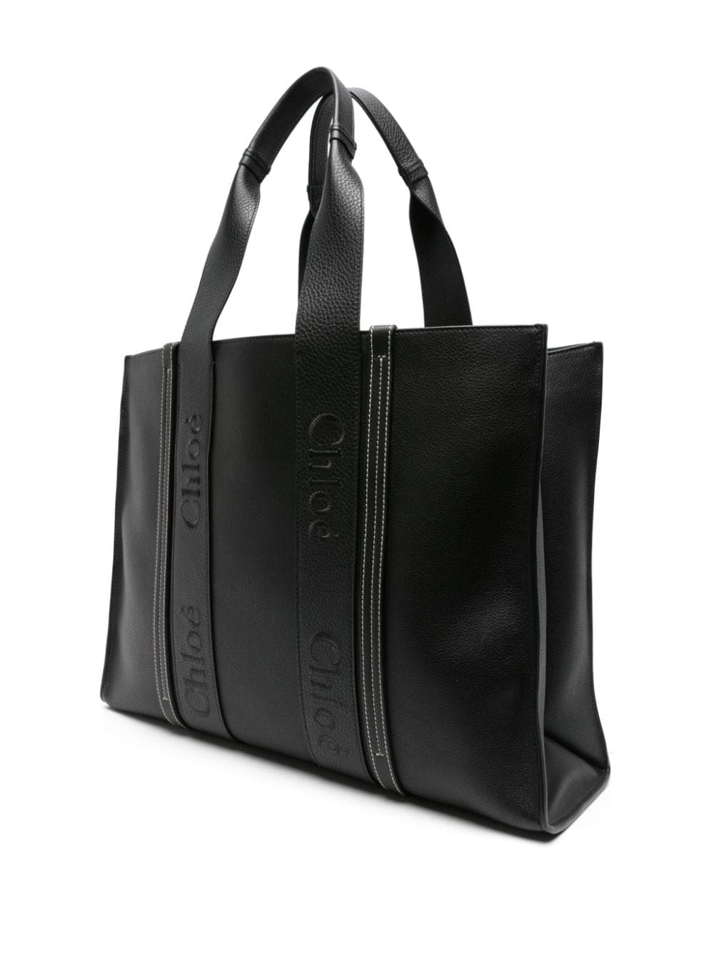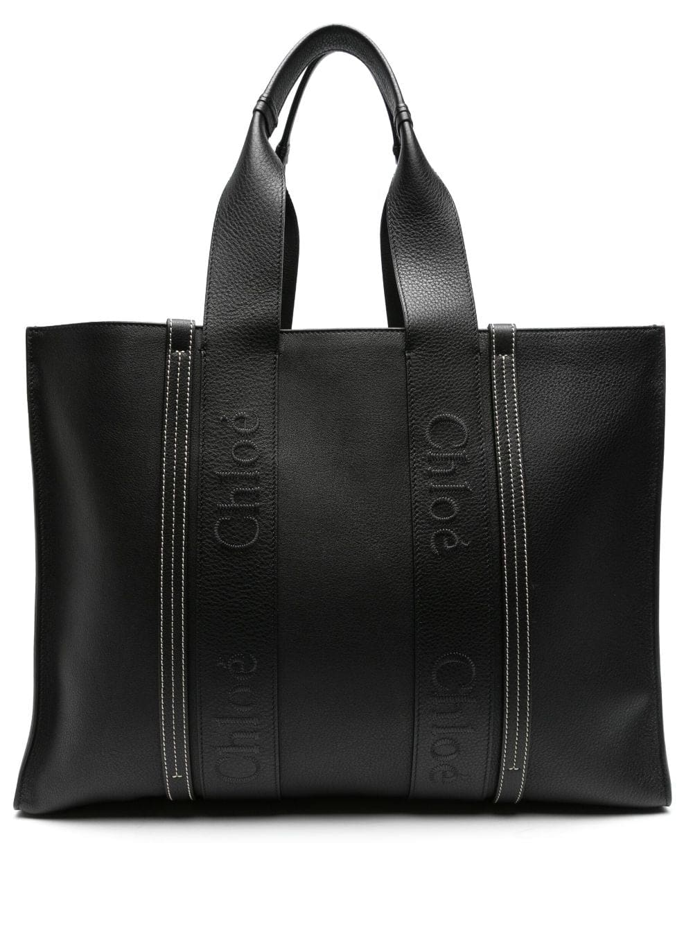 Chloé says its ‘Woody bag is distinguished by its logo-emblazoned handles and effortless everyday attitude.’ This large version is crafted from durable black leather to a capacious shopper silhouette with contrast-stitched trims that wrap from the front to the back.