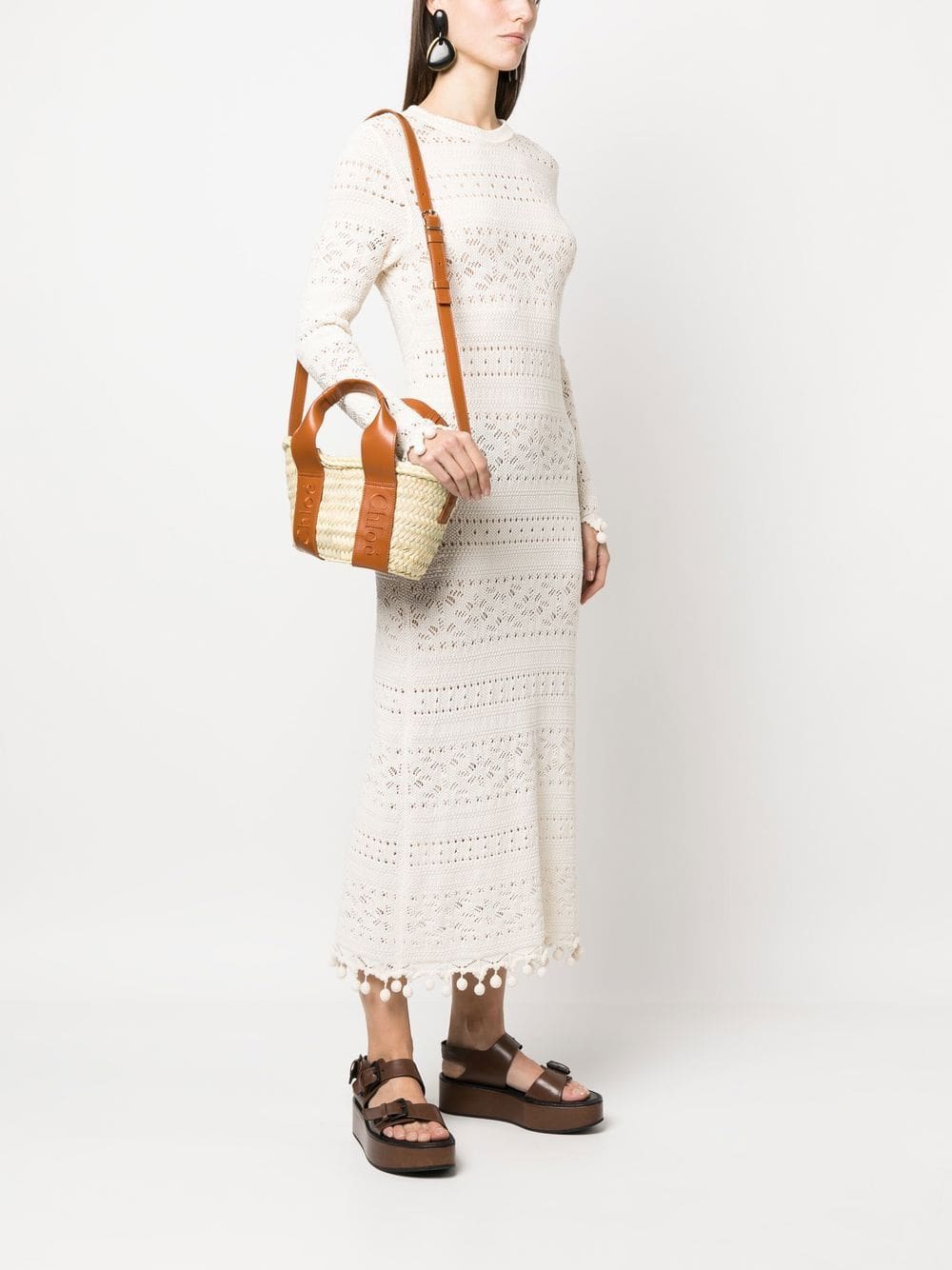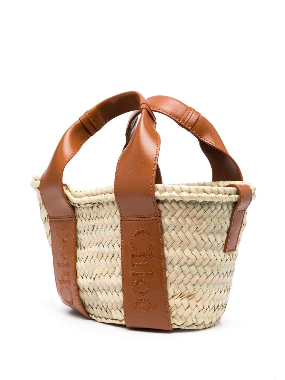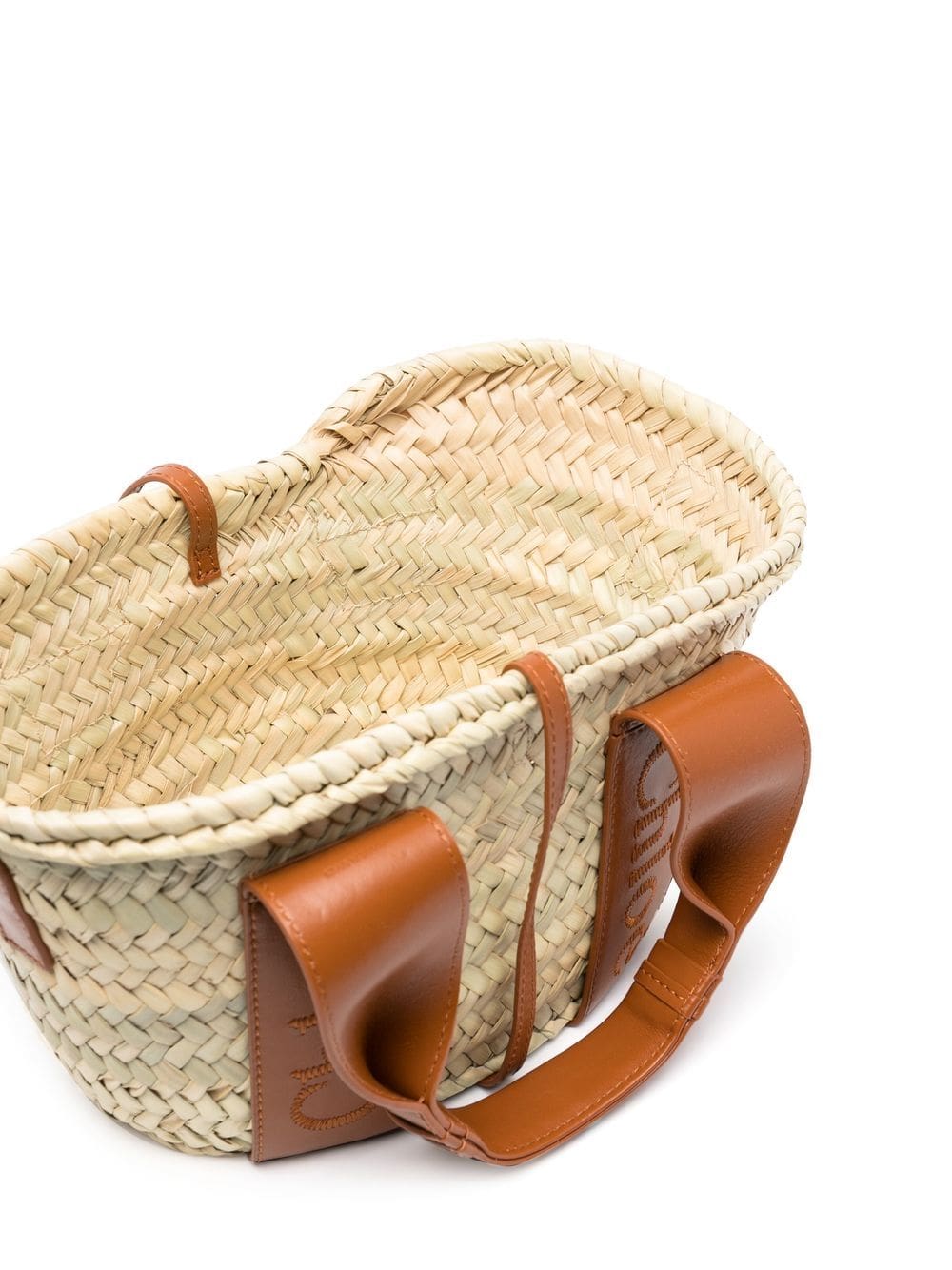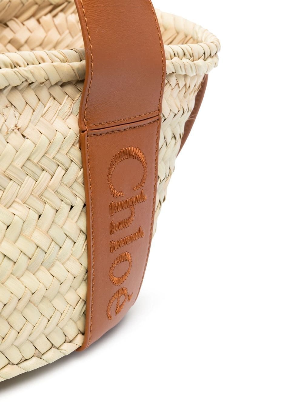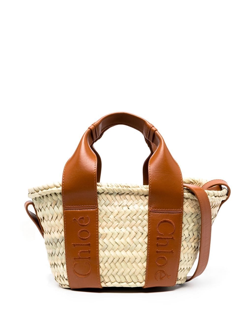 caramel brown raffia leather trim two top handles single shoulder strap main compartment
