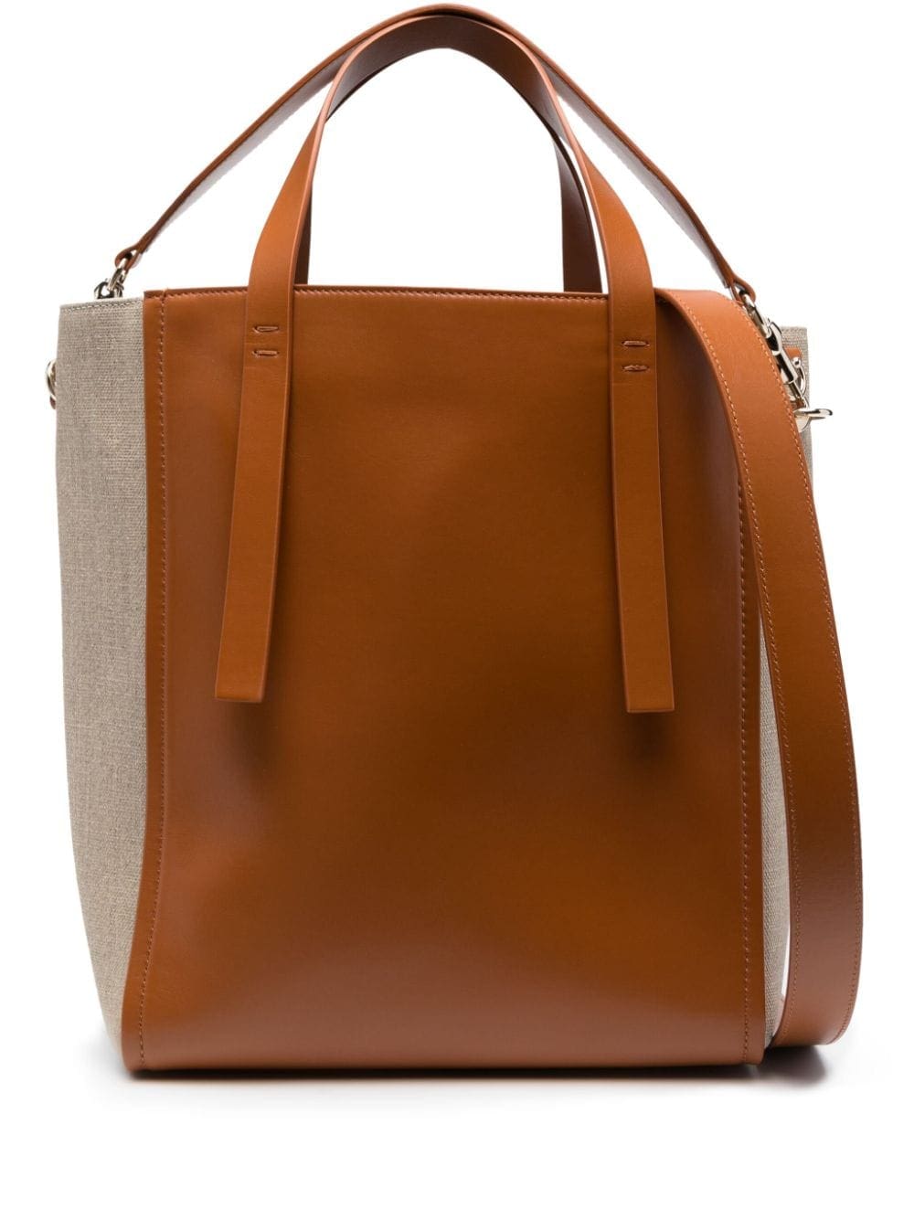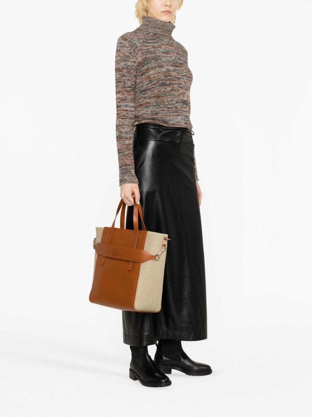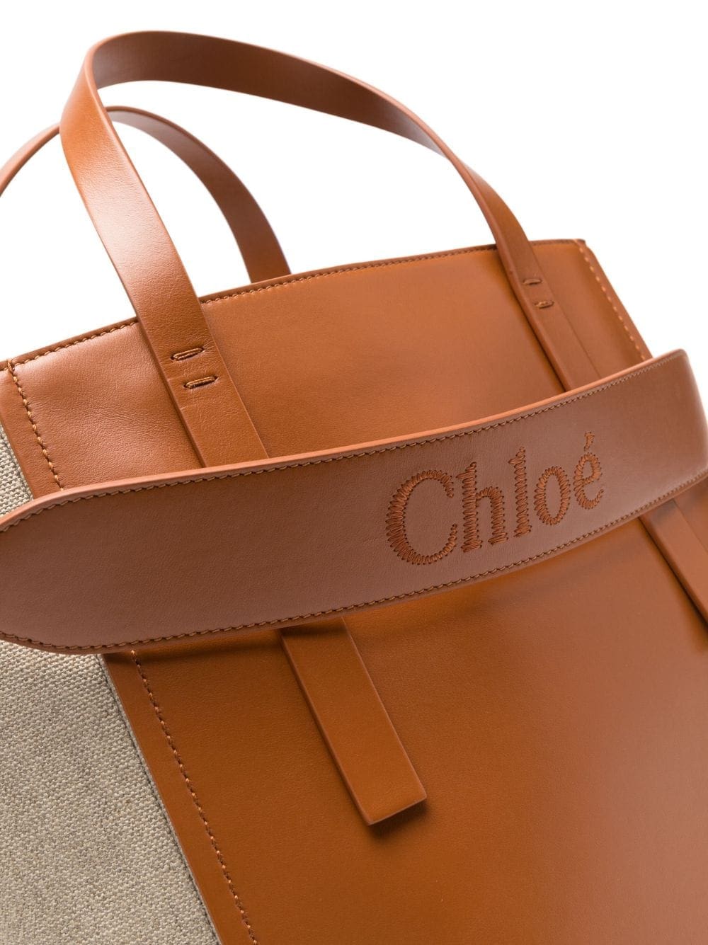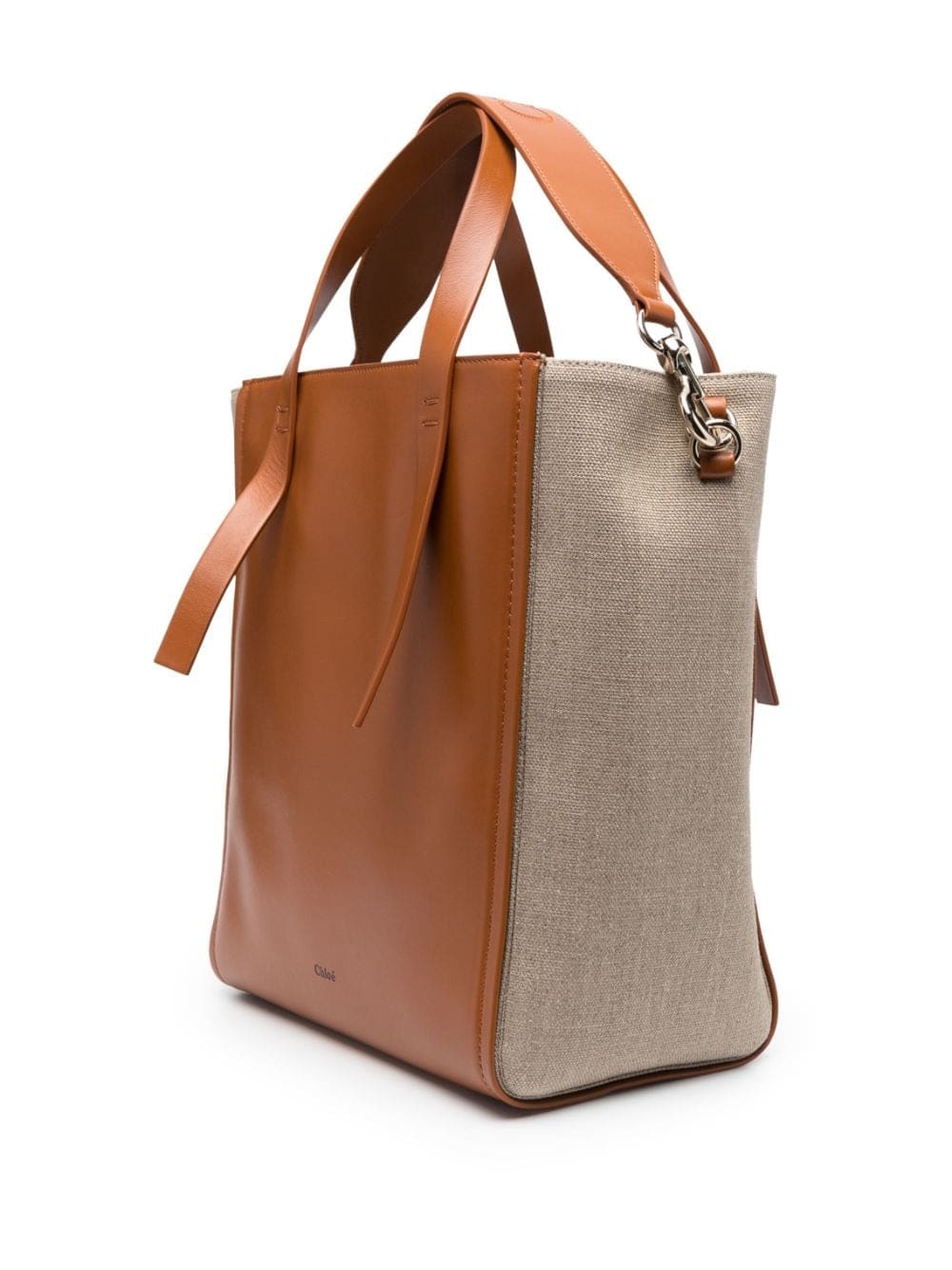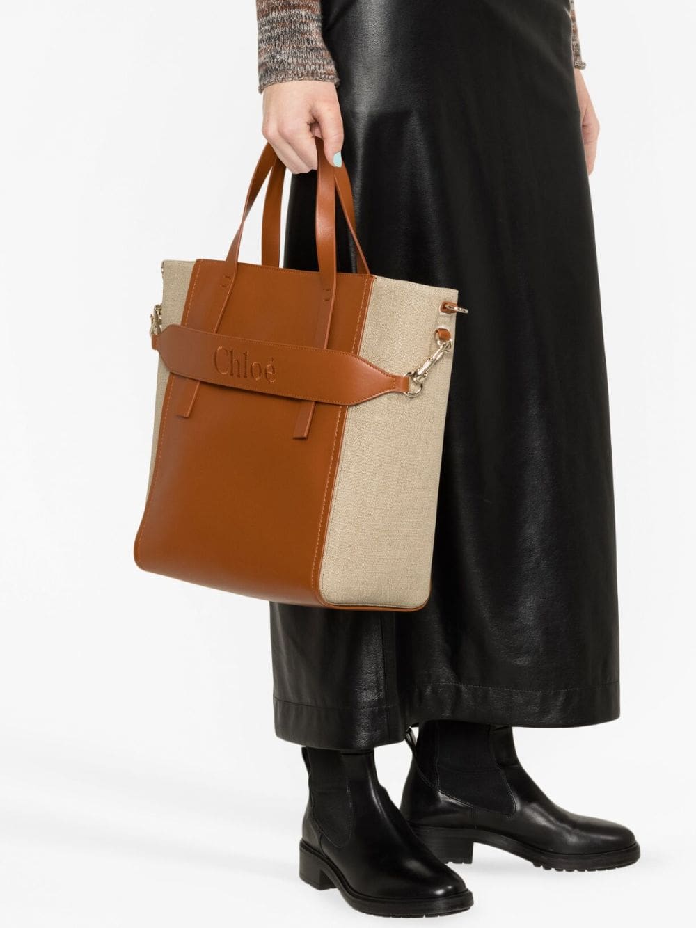 The Chloé Sense line features timeless shapes rooted in Chloé’s DNA – a logo embroidery is showcased on a tonal leather strap. Crafted from a refined interplay of shiny calfskin and linen, the medium tote bag features a roomy main compartment and a long strap for multiple styling options.