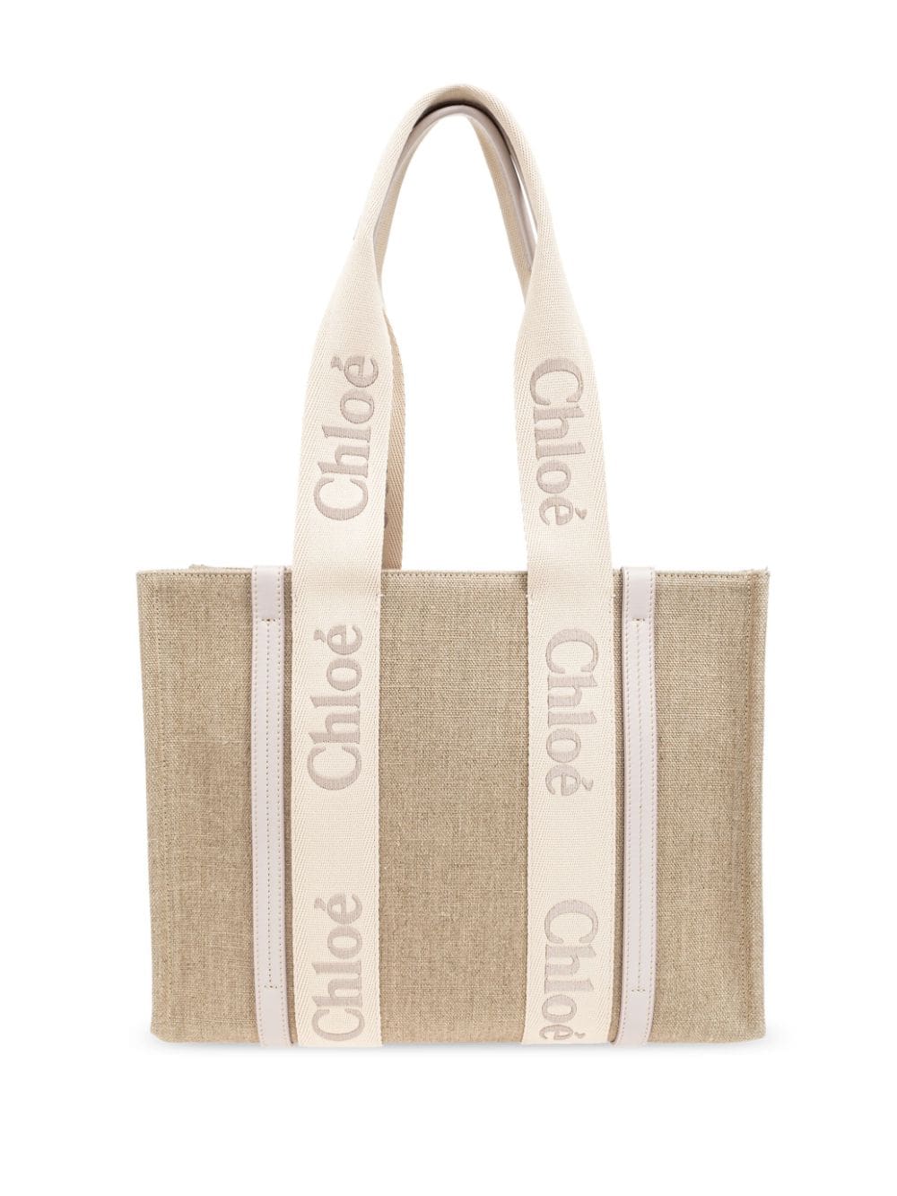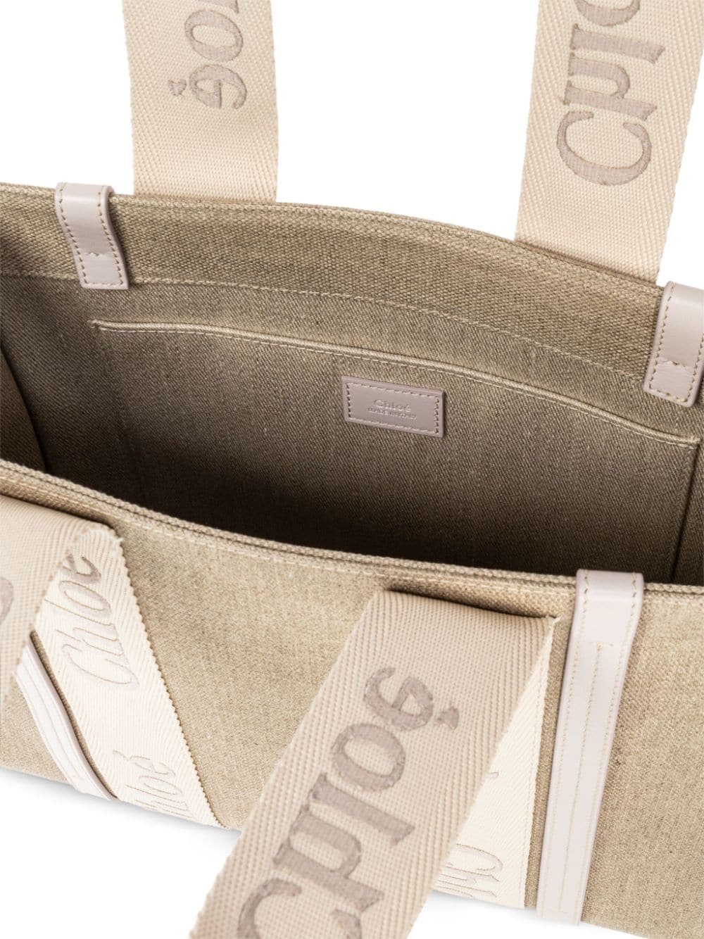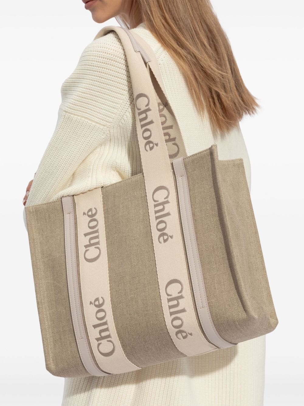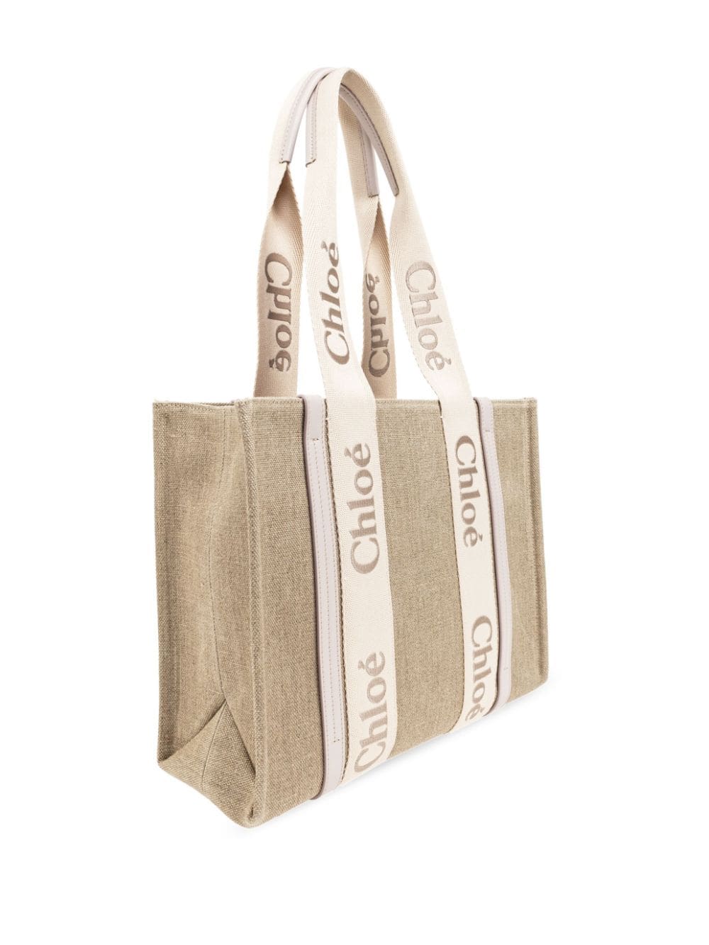 medium Woody logo-strap linen tote bag