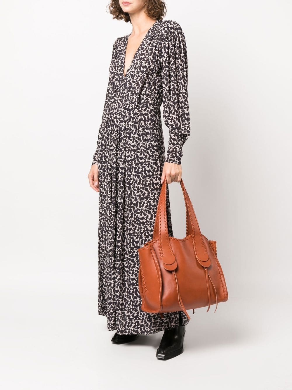 burnt orange calf leather fringe detailing tonal stitching open top two long top handles main compartment internal slip pocket