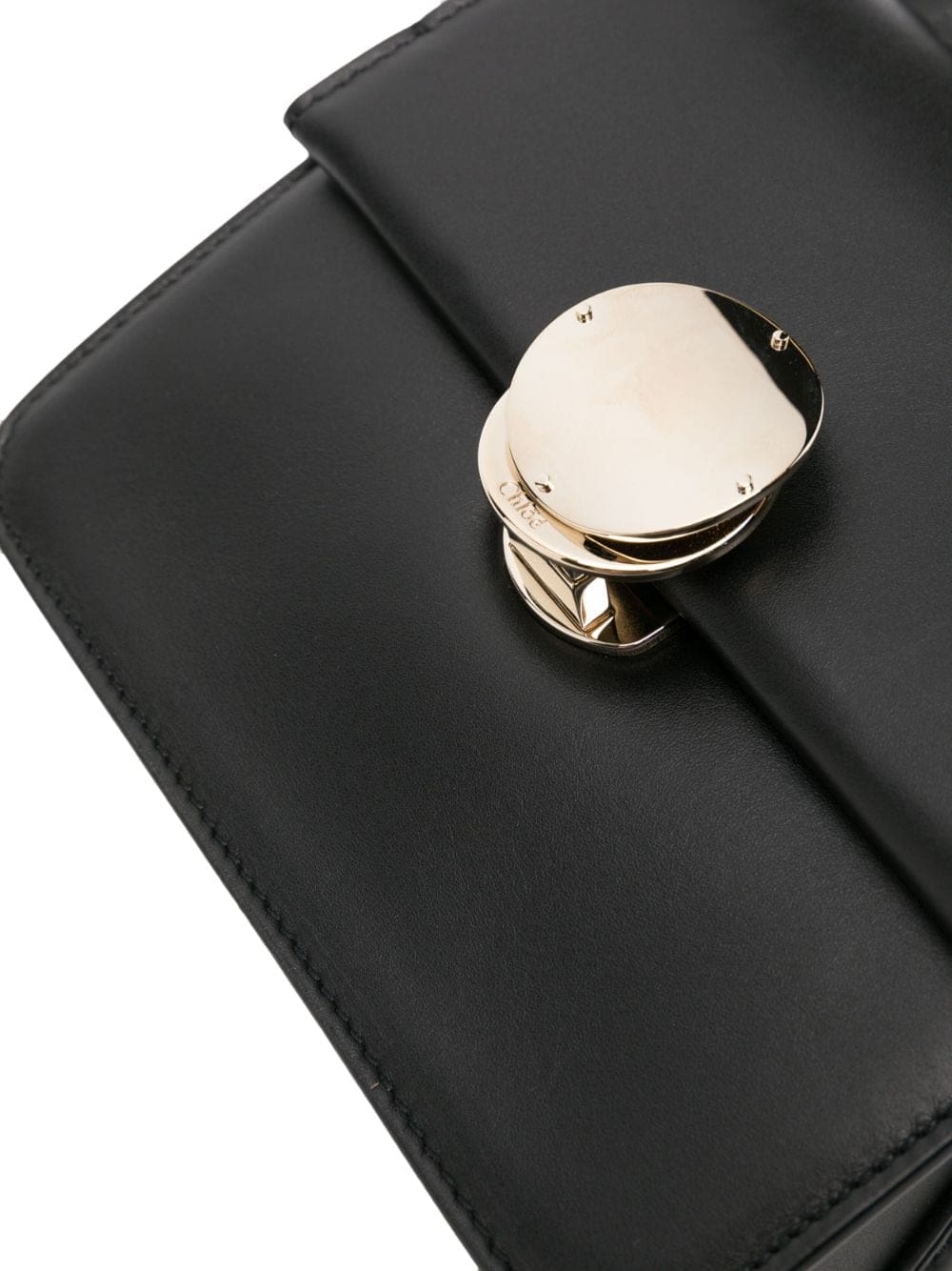 Chloé offers a sleek and versatile accessory with the Penelope Box shoulder bag. It is crafted from black leather and defined by the signature gold-tone clasp fastening.