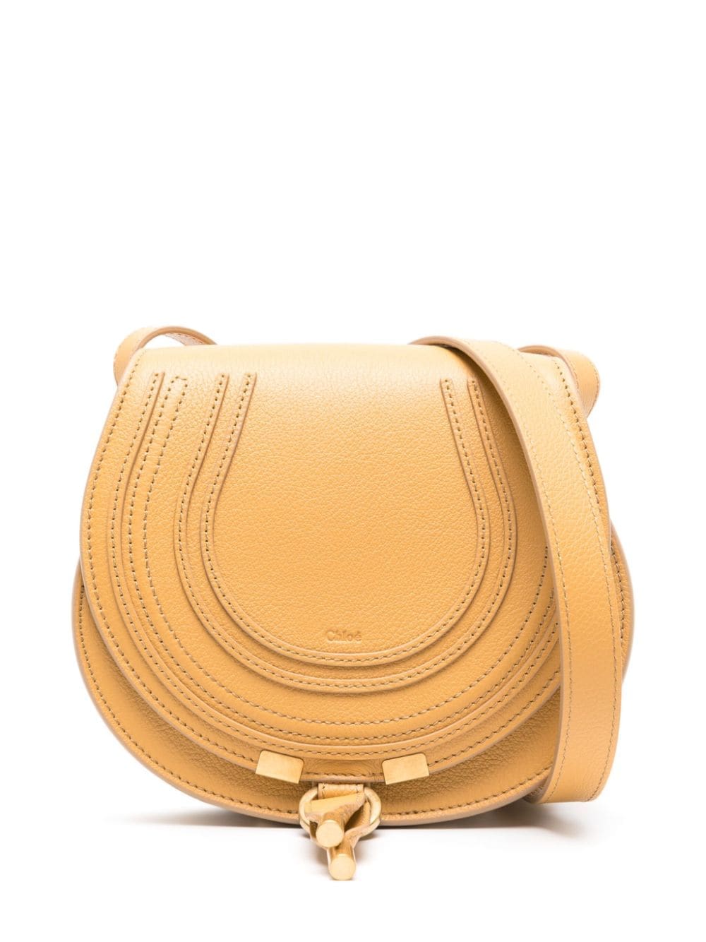 Taking inspiration from 70's folk styles, Chloé's small Marcie crossbody bag is crafted from grained leather with curved lines that lend a contoured silhouette. Decorative stitching and gold-tone metal accents complement the accessory and showcase the Parisian brand's meticulous attention to detail.