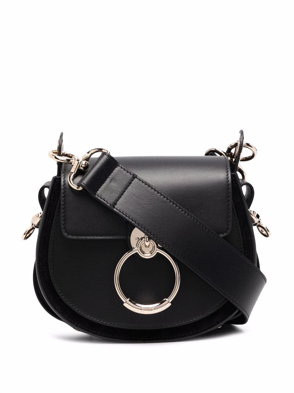 One of Chloé’s most iconic designs, the Tess bag is defined by its rounded shape. Seen here in black, the design is finished with a signature O-ring detail.