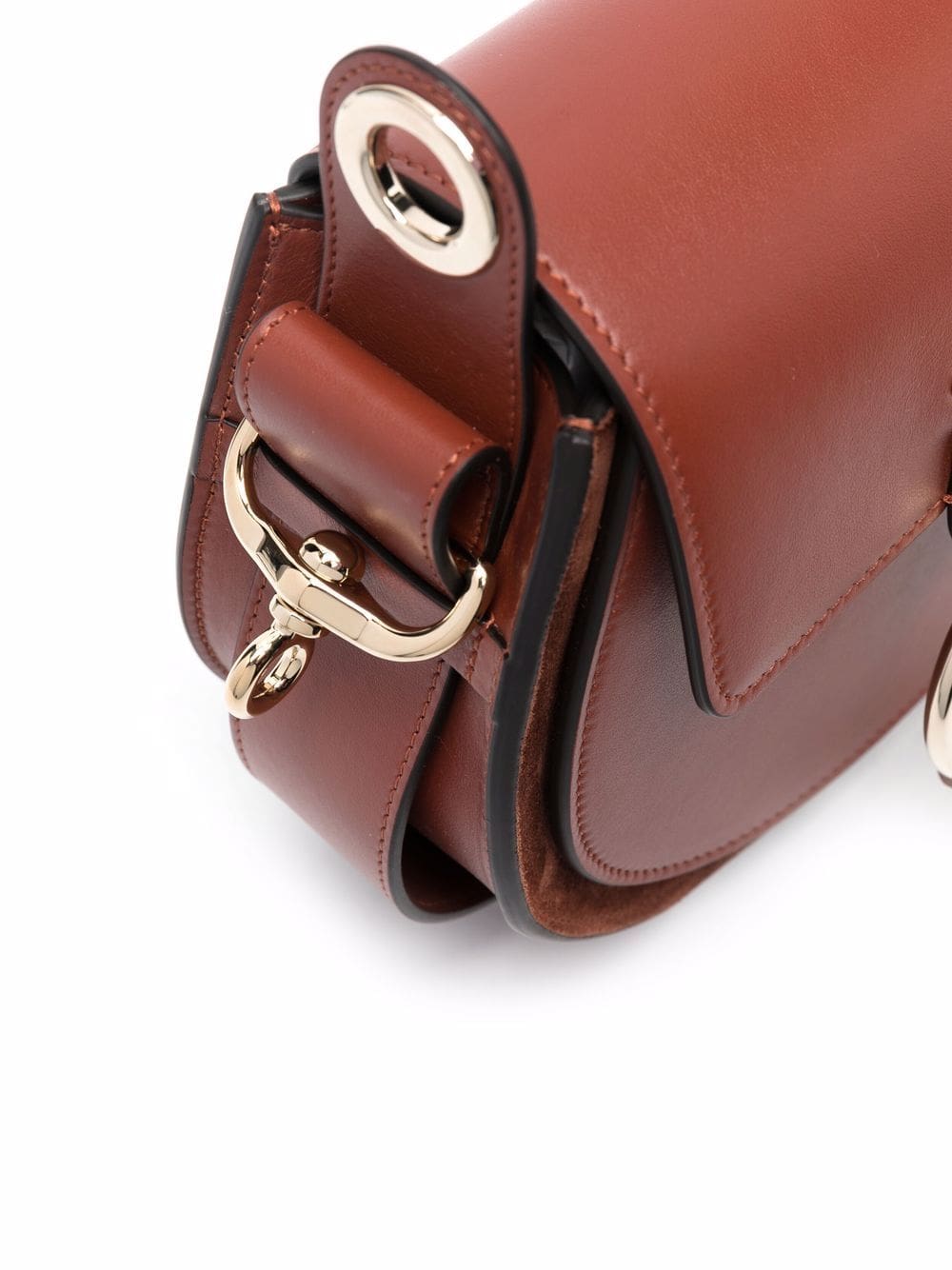 One of Chloé’s most iconic designs, the Tess bag is defined by its rounded shape. Seen here in a dark brown hue, the design is finished with a signature O-ring detail.