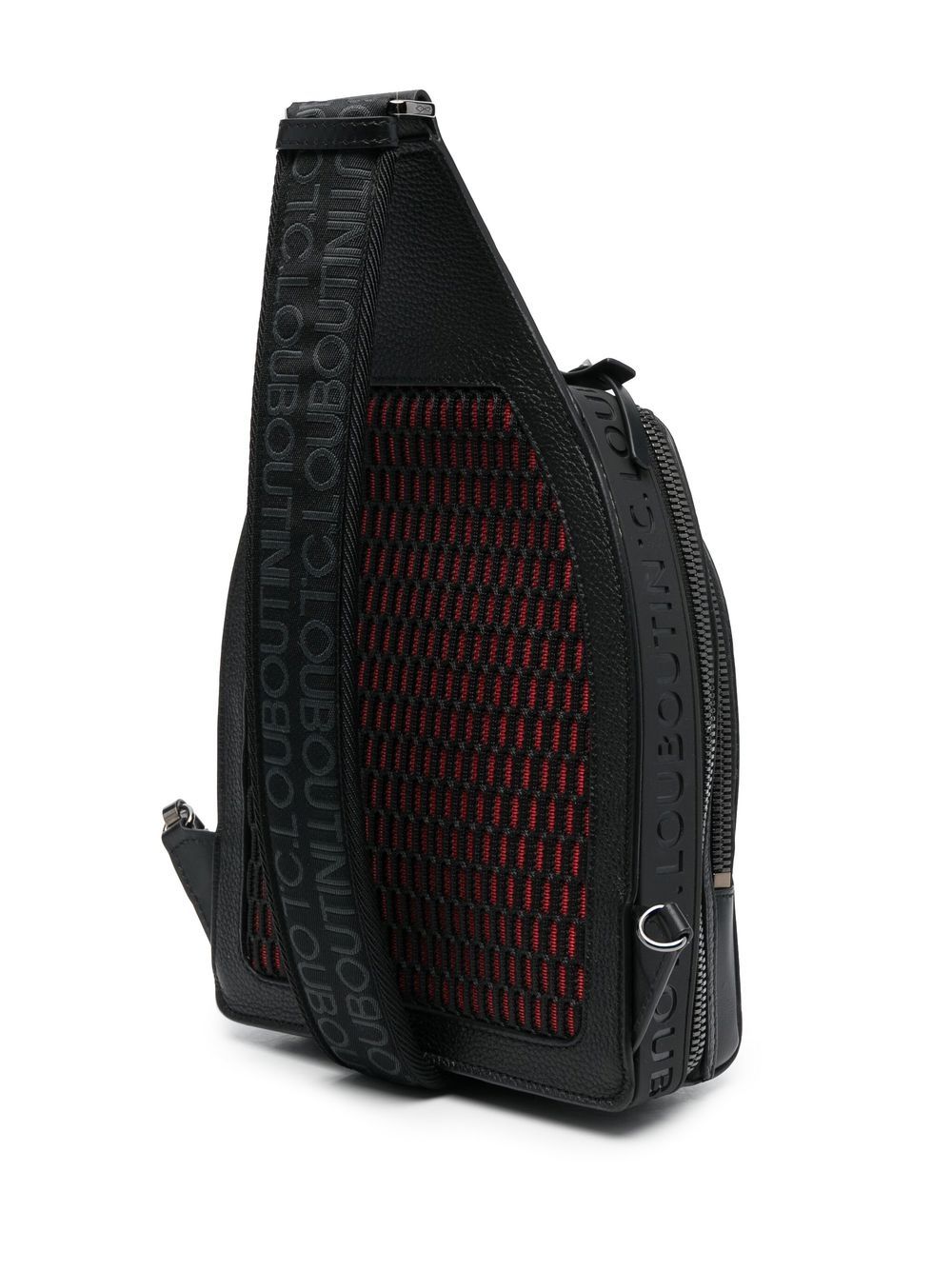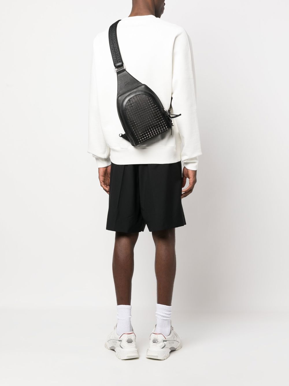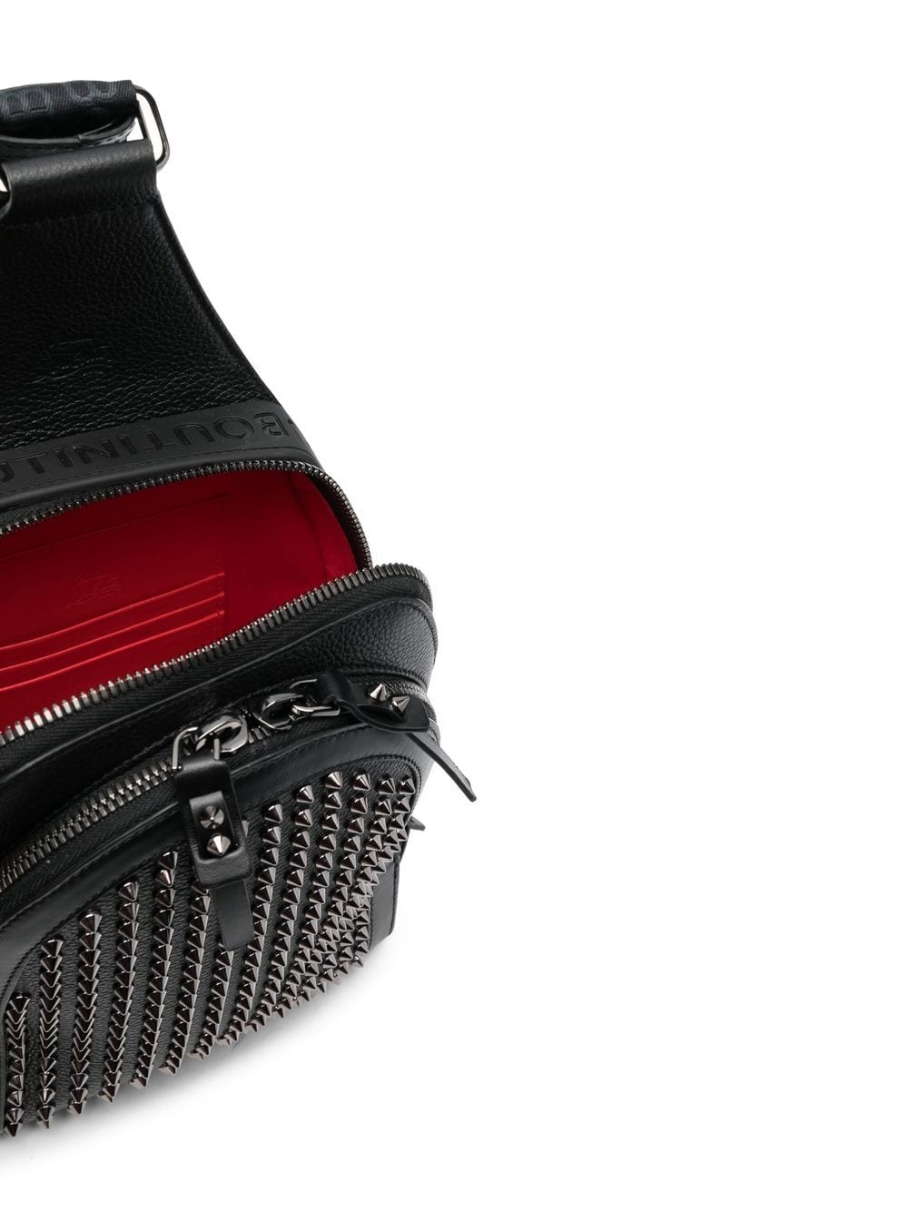 black/red calf leather spike stud detailing debossed logo to the side logo shoulder strap adjustable shoulder strap two zip-fastening compartments internal card slots